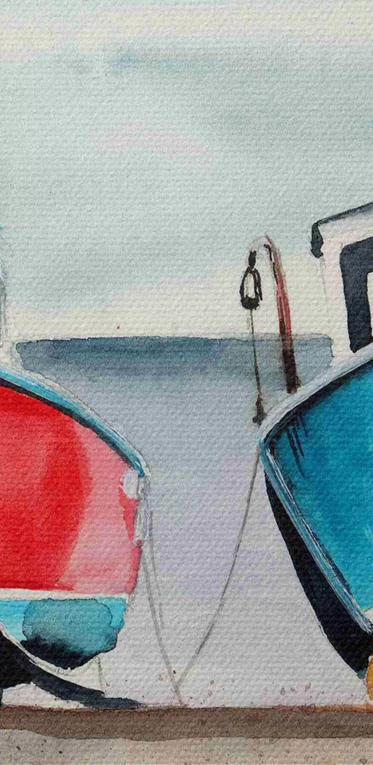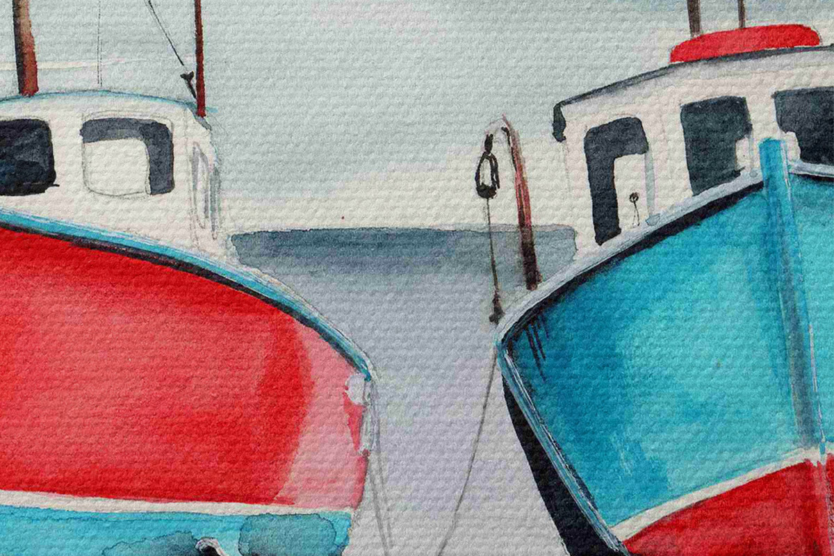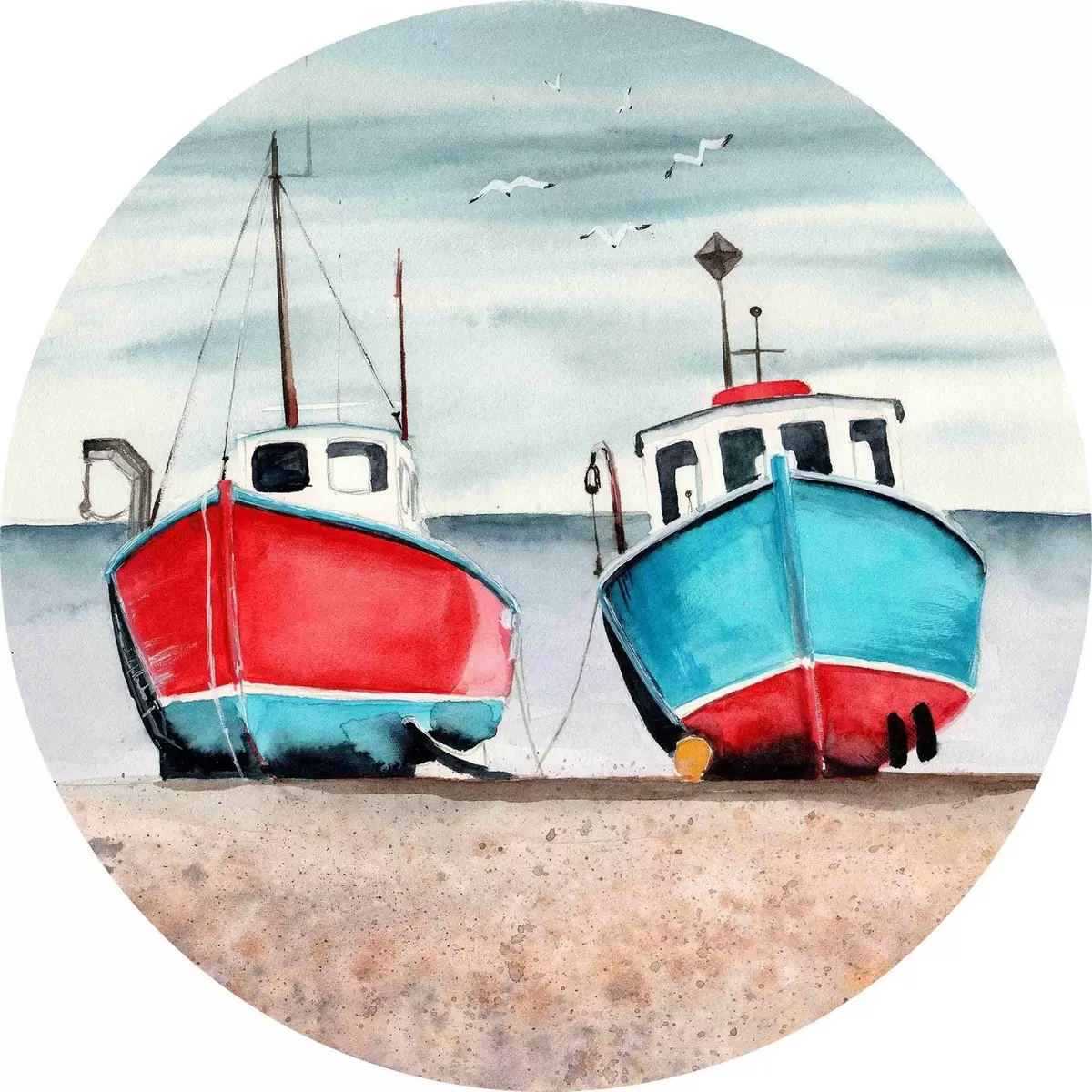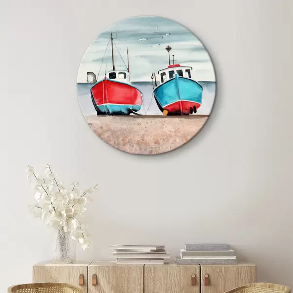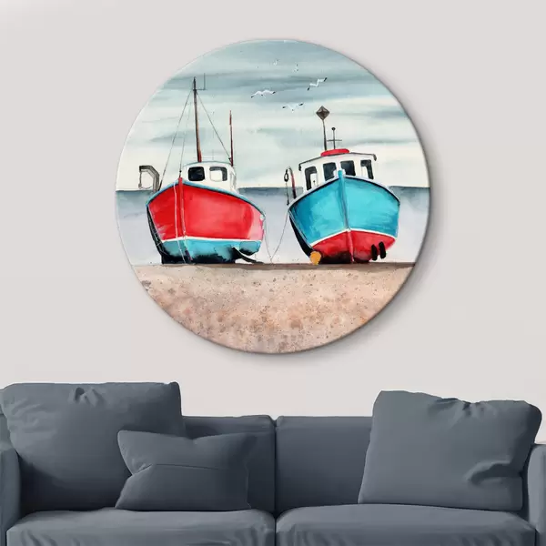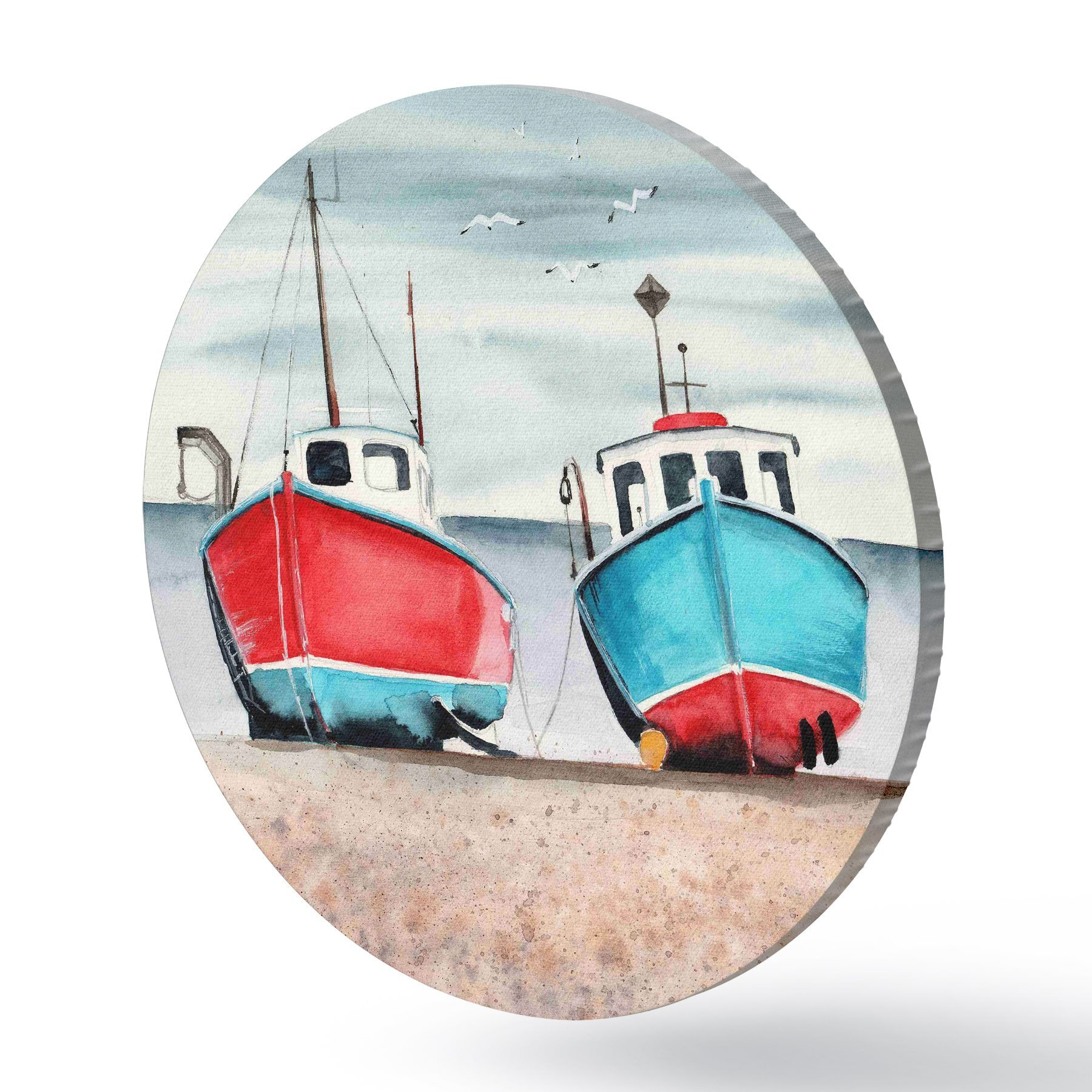 Runde Gemälde Drei Boote, die am Ufer liegen r37787