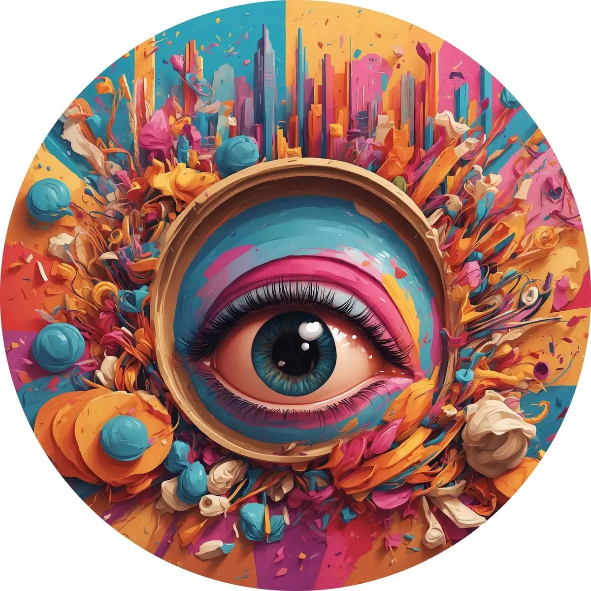 Runde Gemälde Ein buntes Auge, umgeben von einem Kreis r37791