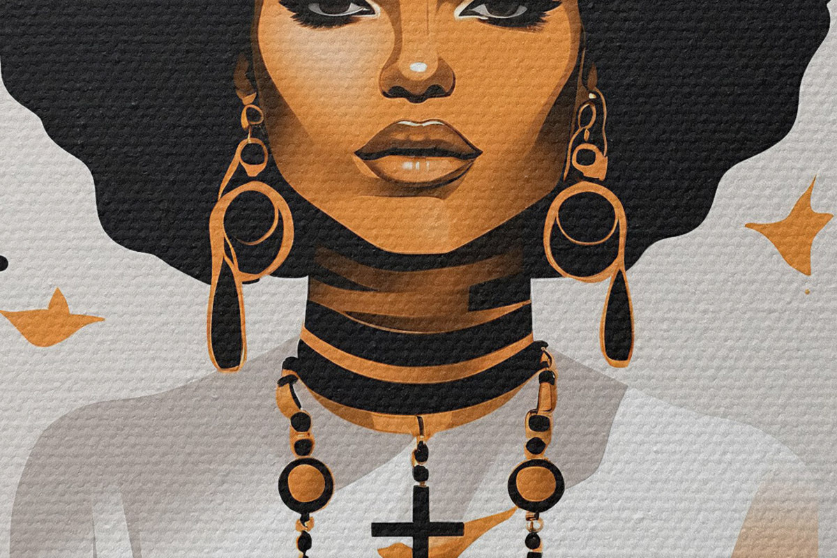 Bild Eine Frau mit großem Afro, weißem Hemd und Ohrringen Nr r37793