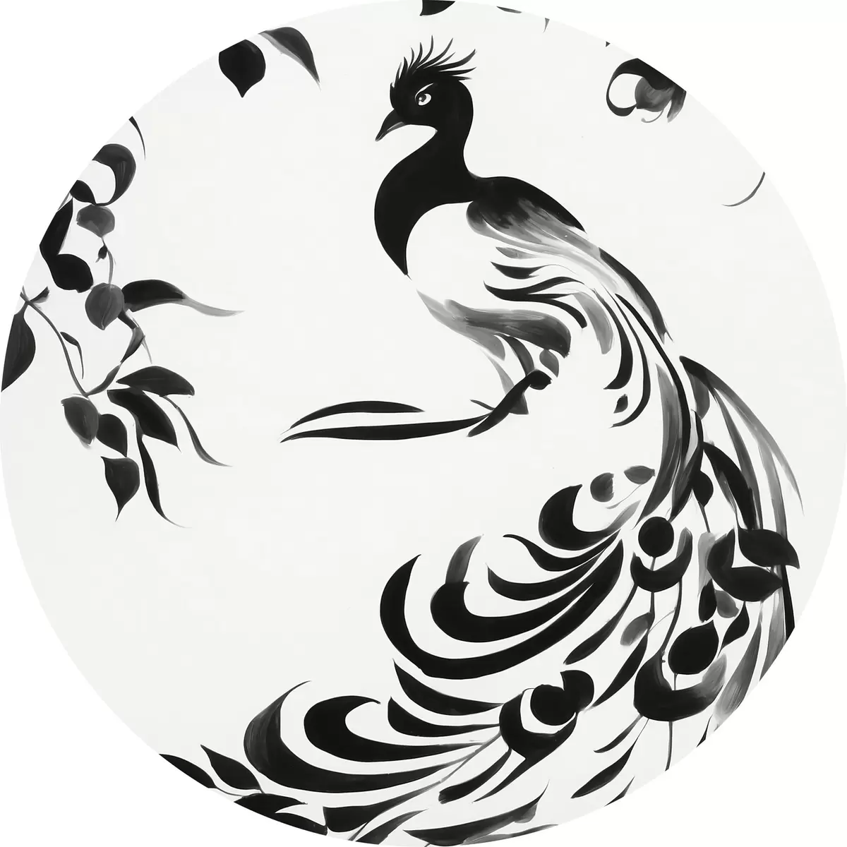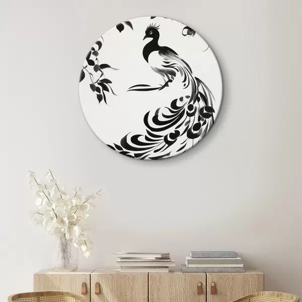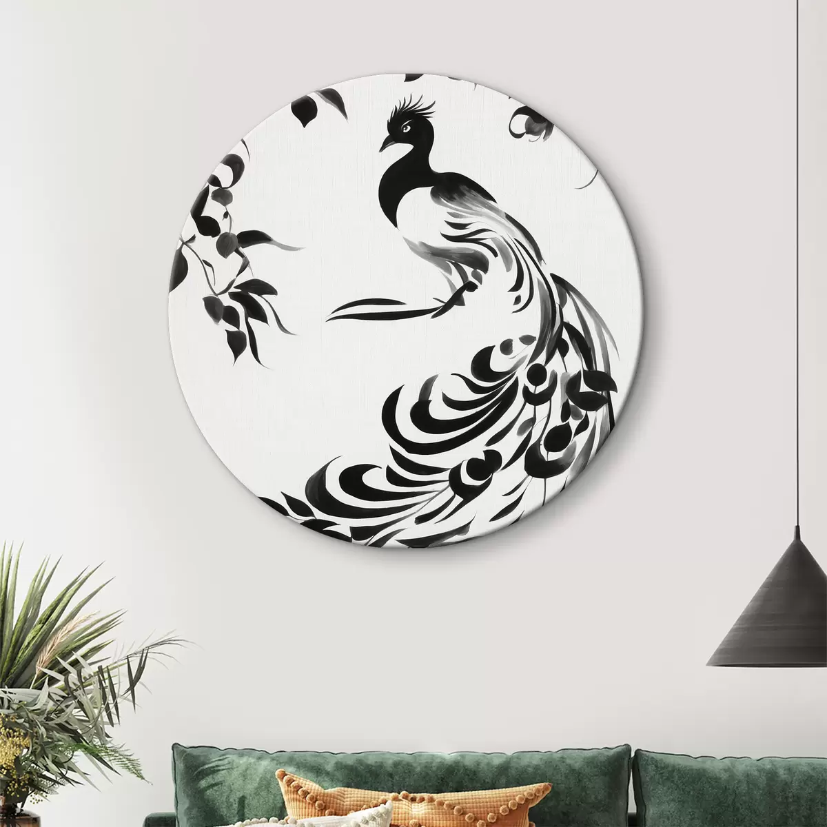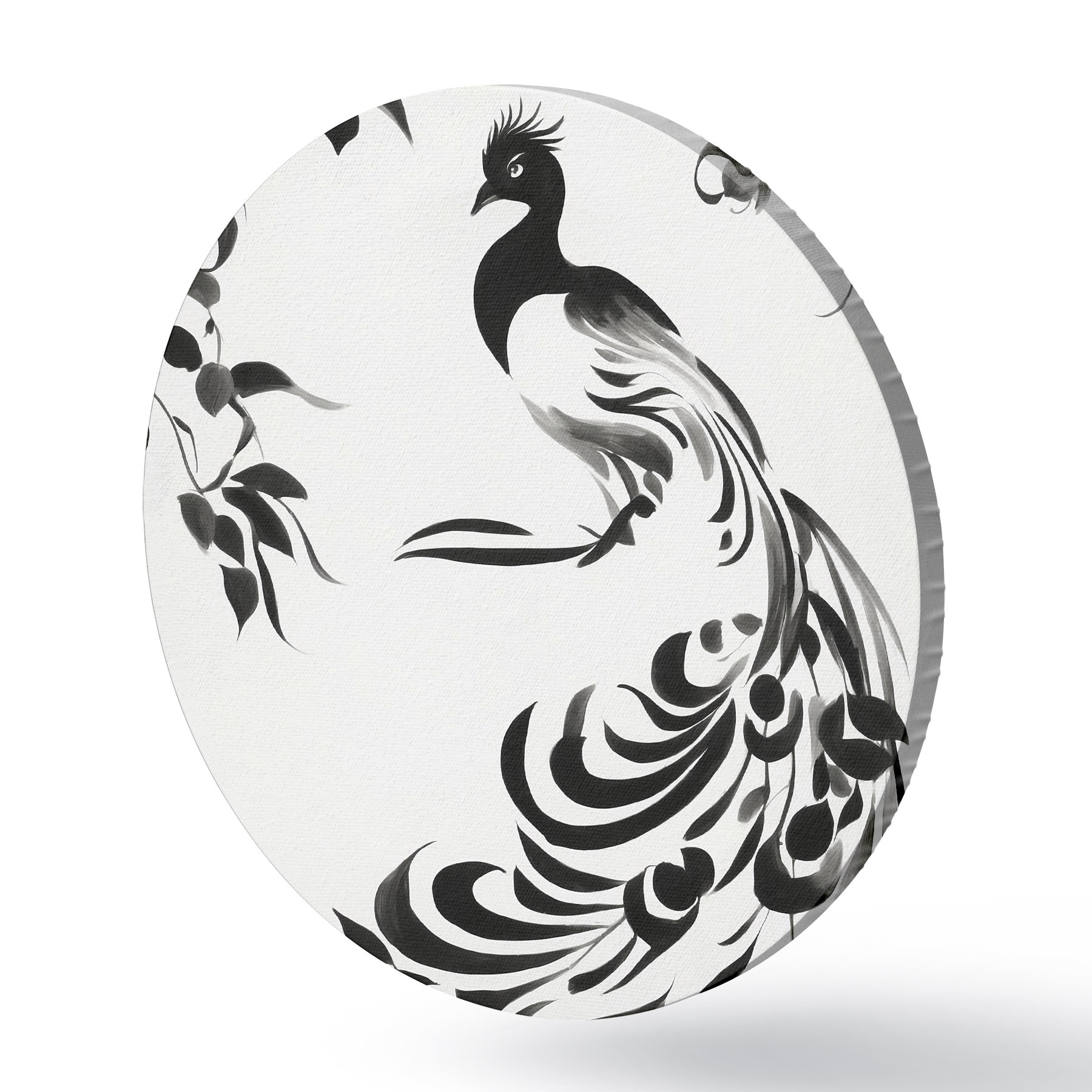 Runde Gemälde Ein schwarz-weißes Gemälde eines Vogels r37794