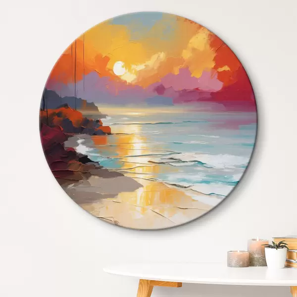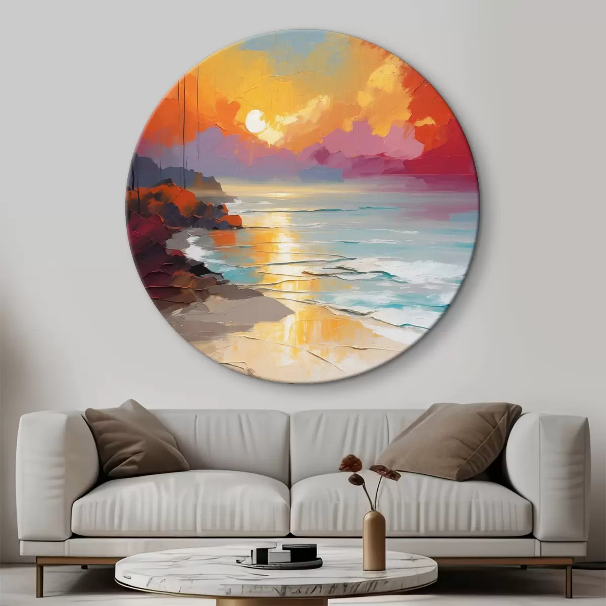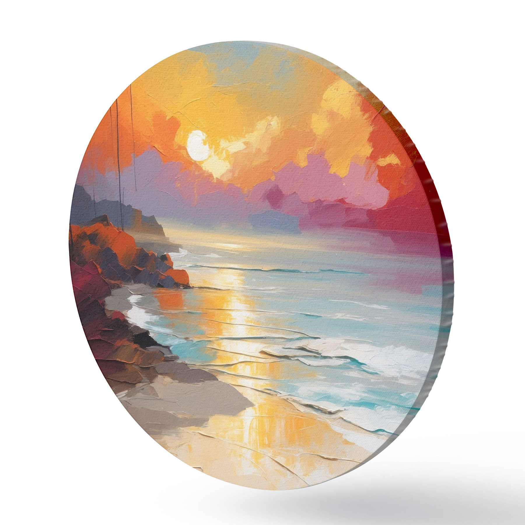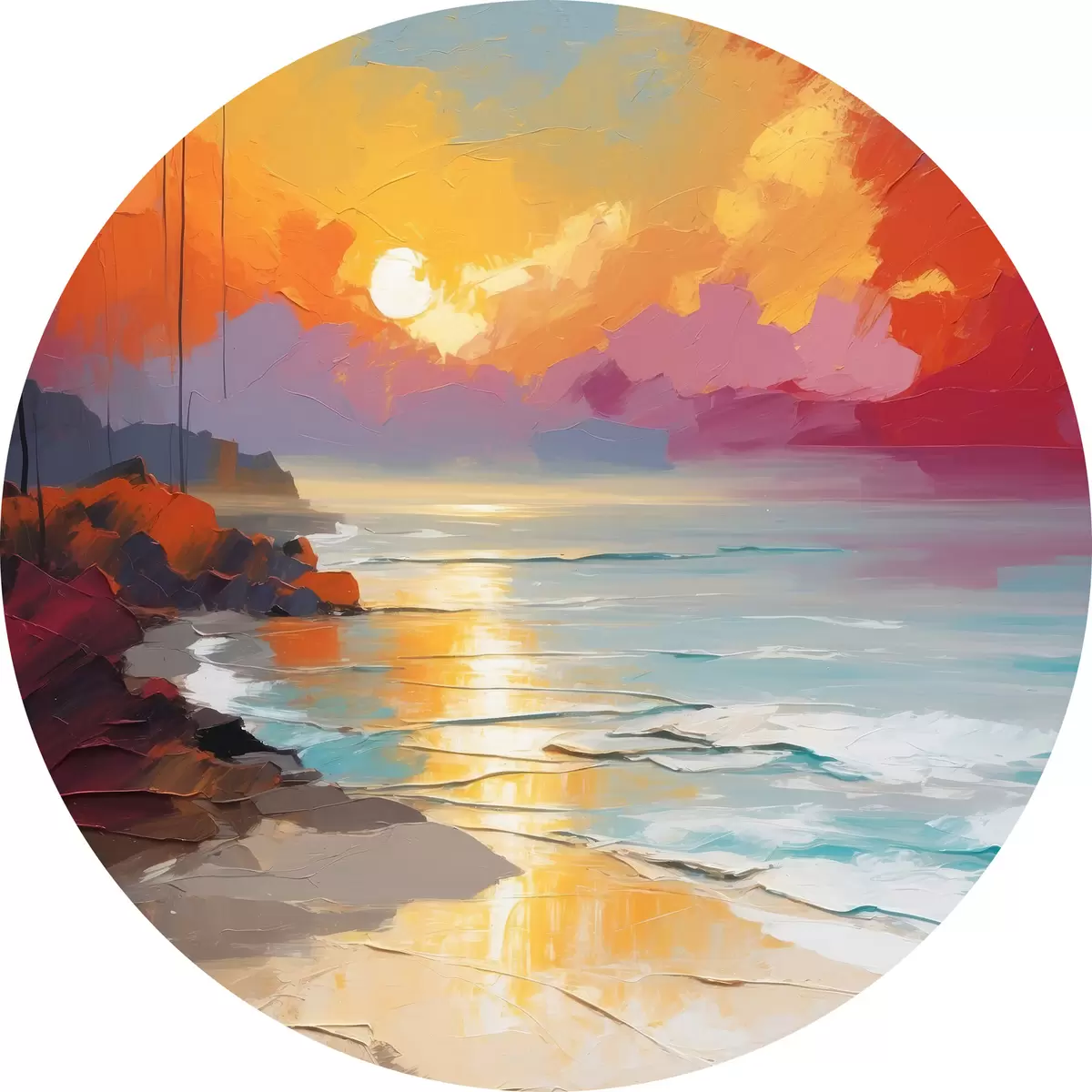 Runde Gemälde Morgendämmerung am Meer in Öl r37800