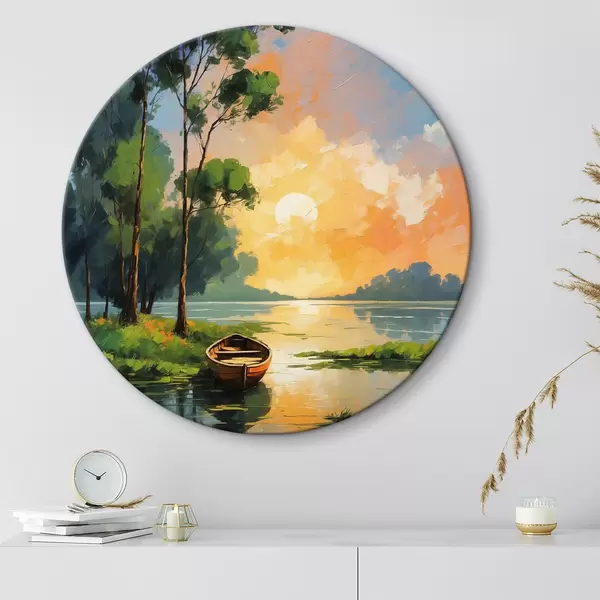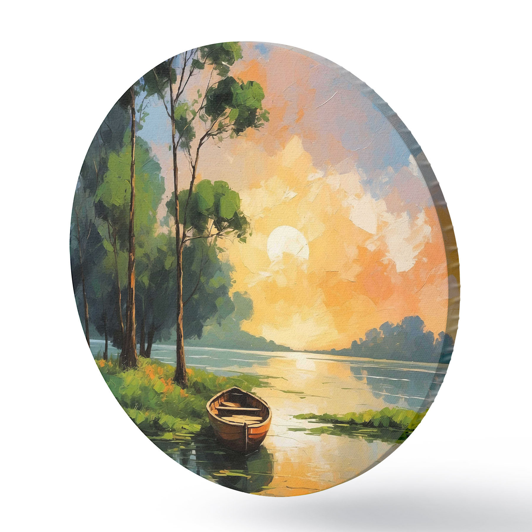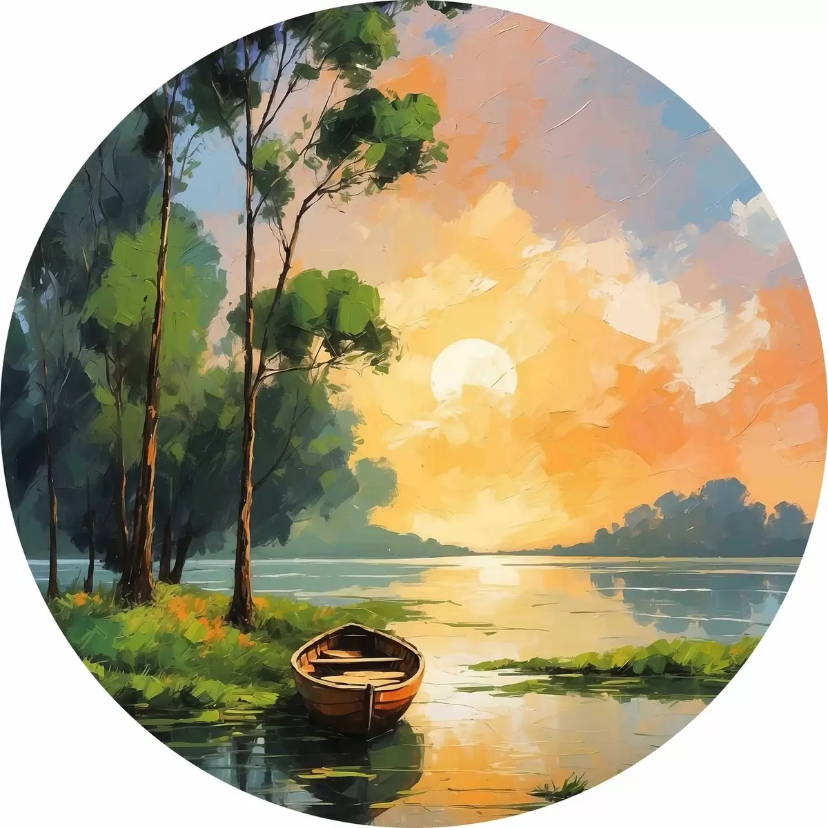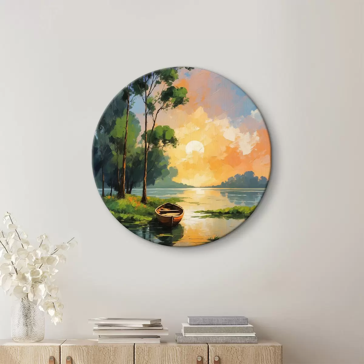 Runde Gemälde Bild eines Bootes auf dem See r37801