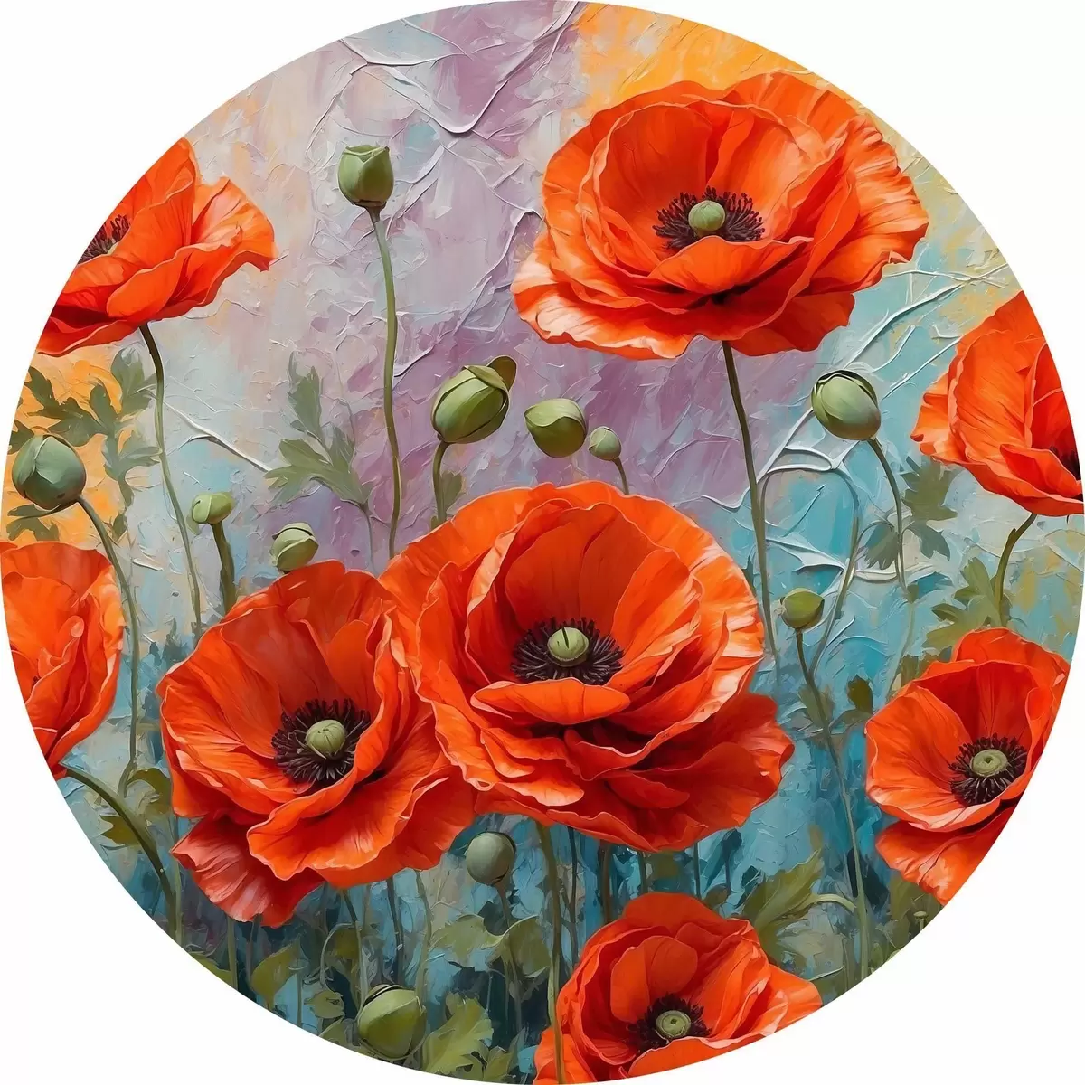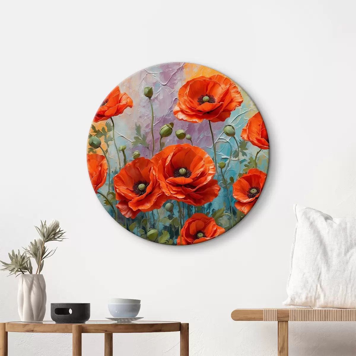 Runde Gemälde Ein Bild mit roten Blumen r37805