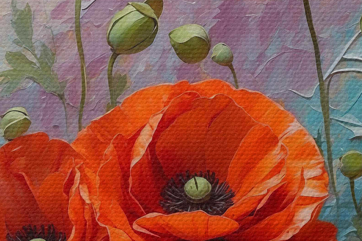 Drei Materialtypen stehen zur Verfügung: Economic Canvas - ein dichtes und haltbares Material für den Digitaldruck, identisch mit Malerleinwand, wasserfeste Oberfläche, realistische Wiedergabe von Details, mittelkörniges Material. Premium Canvas - die Textur ähnelt der einer Malerleinwand (verwobene kleine Fäden). Weiche, detaillierte Wiedergabe des Bildes auf einer matten Oberfläche. Eco-Premium - hochwertiges Gewebe aus 100% Baumwolle. Dank der natürlichen Baumwollfasern ist das Material langlebig und verschleißfest. Hervorragende Farbwiedergabe und Detailtreue.