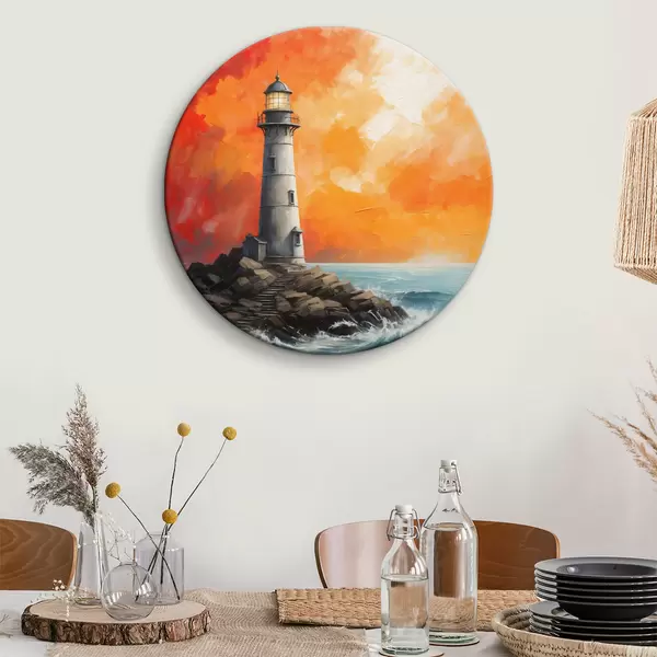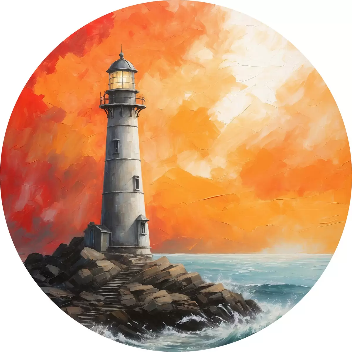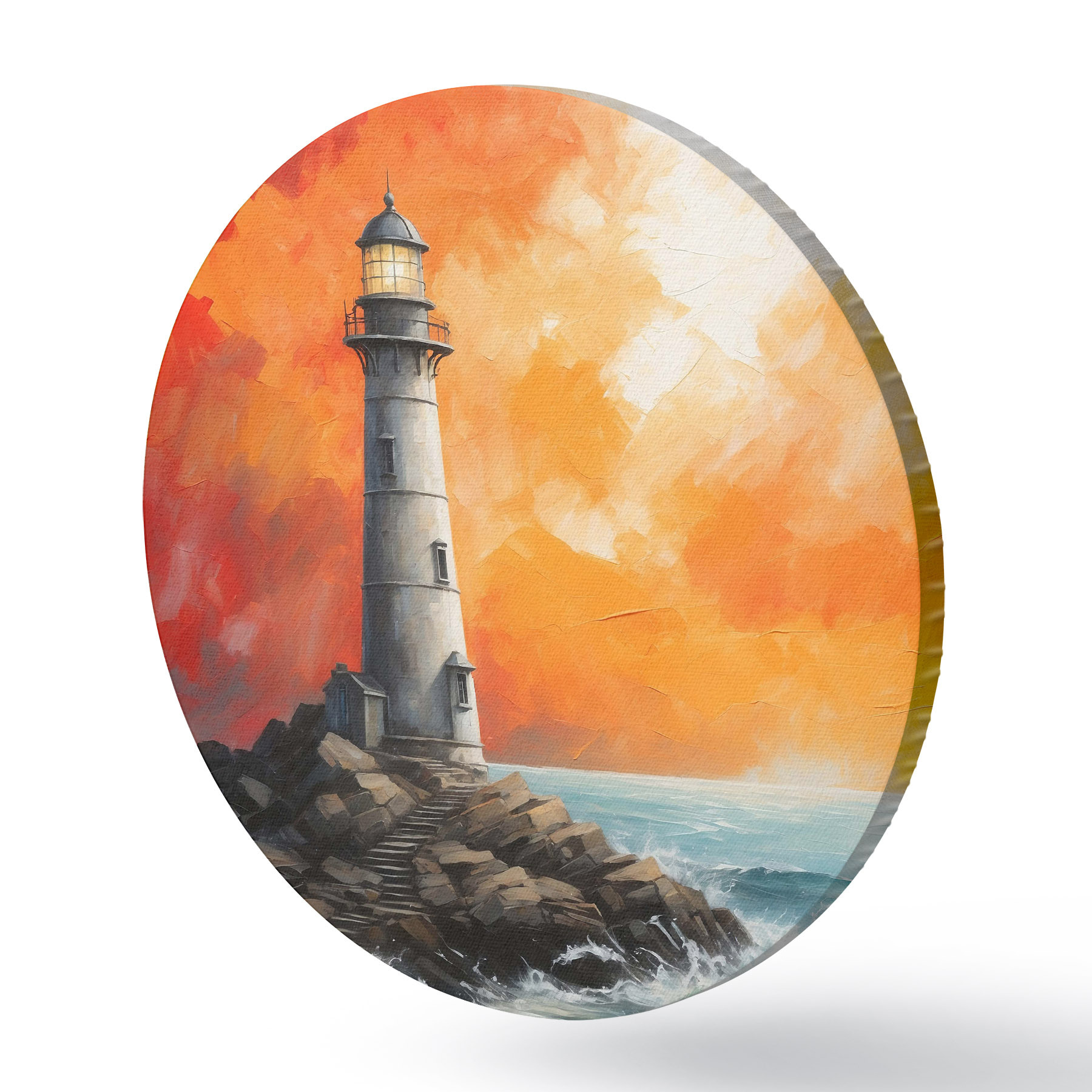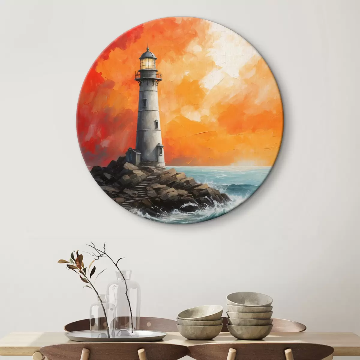 Runde Gemälde Leuchtturm auf einer felsigen Insel r37808