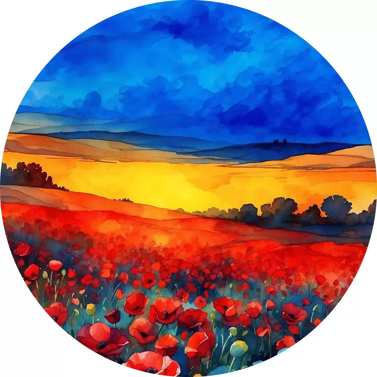 Runde Gemälde Ein Bild von einem Blumenfeld r37811