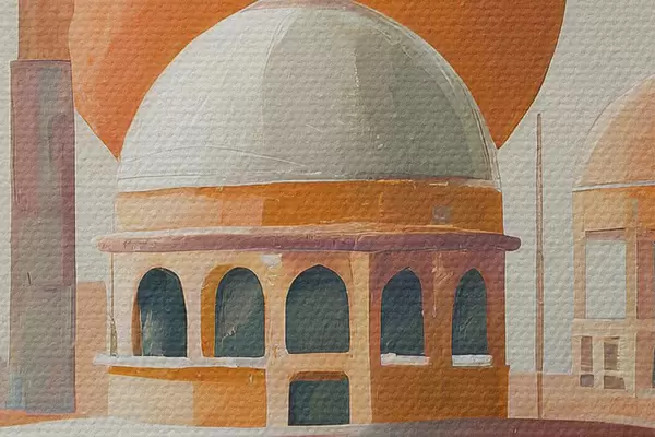 Bild Wüstenlandschaft mit Gebäuden und einem großen orangefarbenen Ball Nr r37812