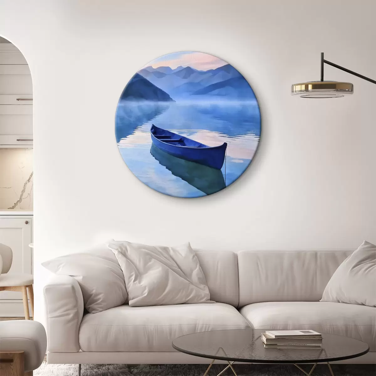 Runde Gemälde Boot auf dem Wasser r37818