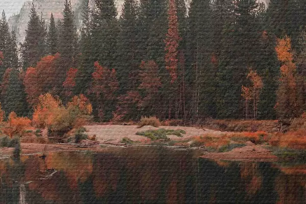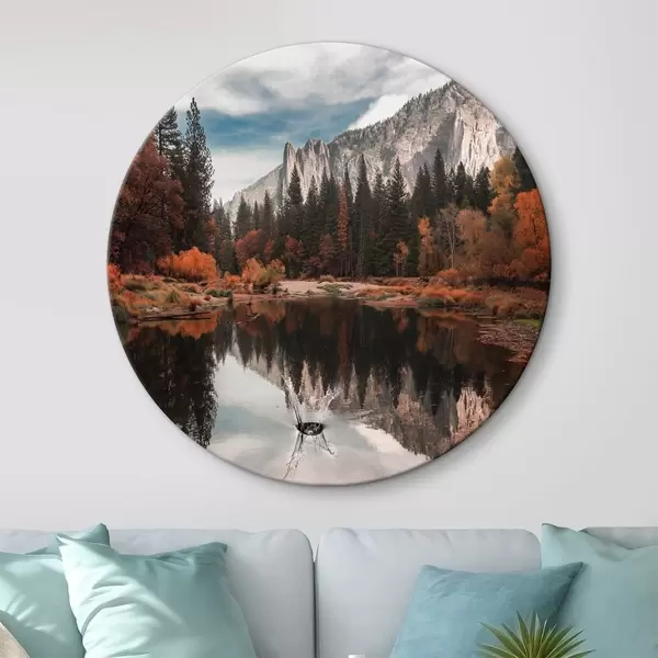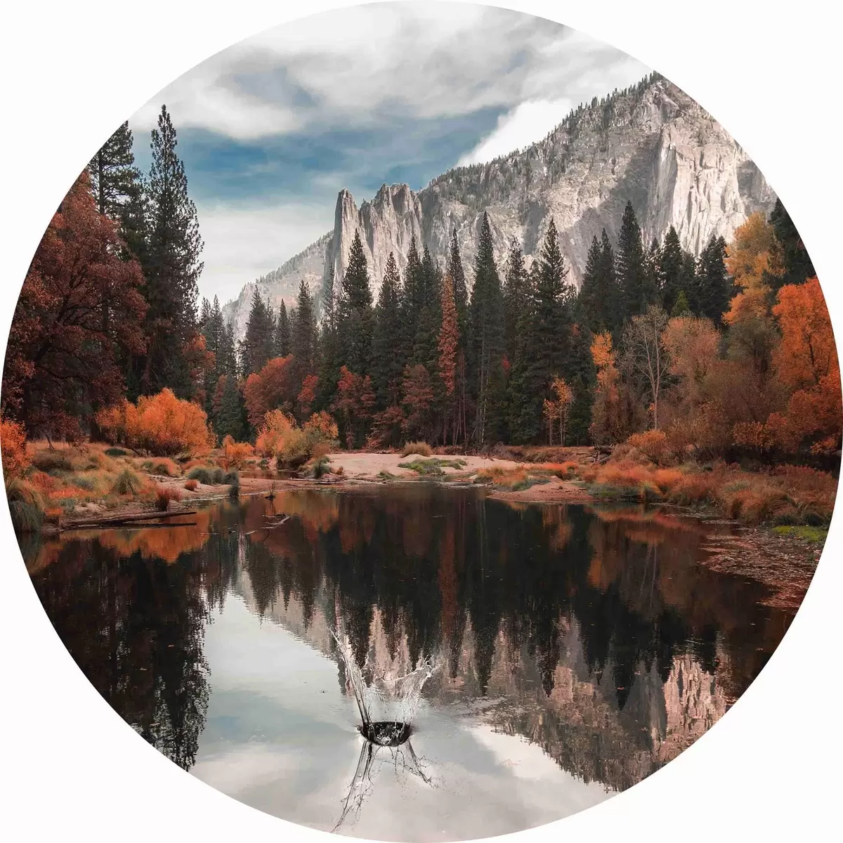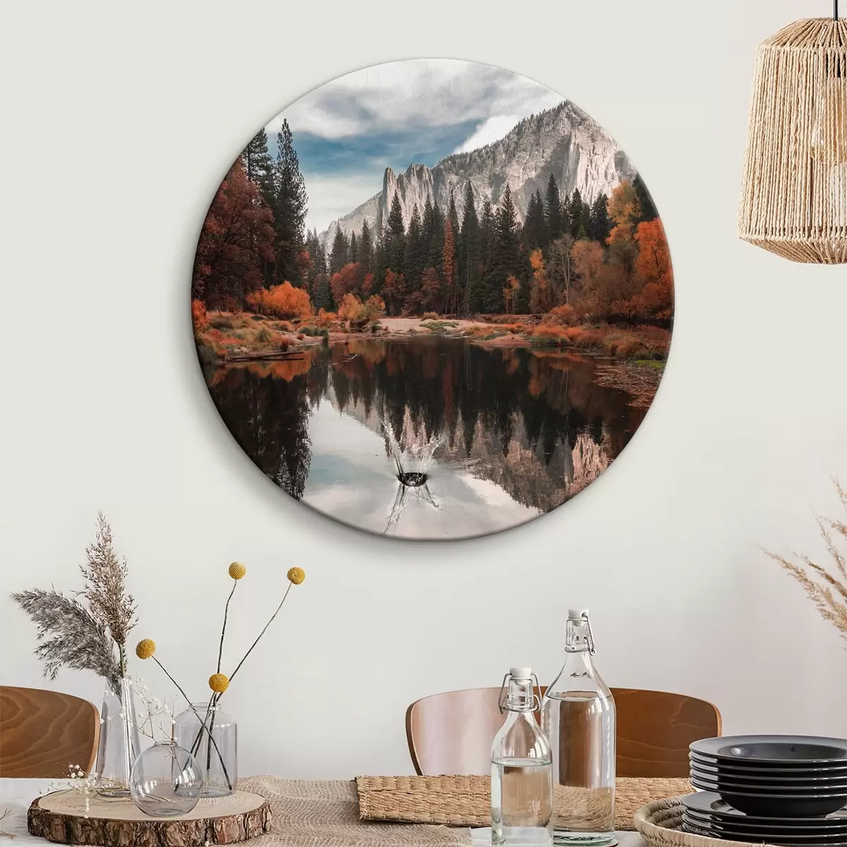 Runde Gemälde Herbstliche Reflektionen auf einem stillen See r37852