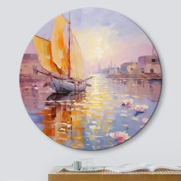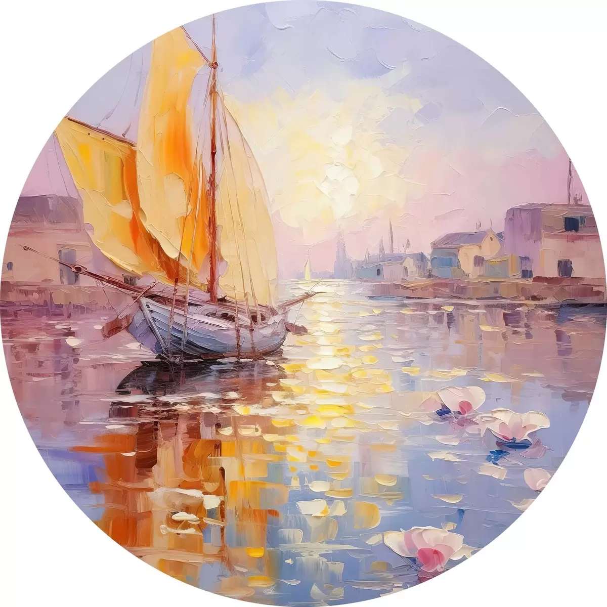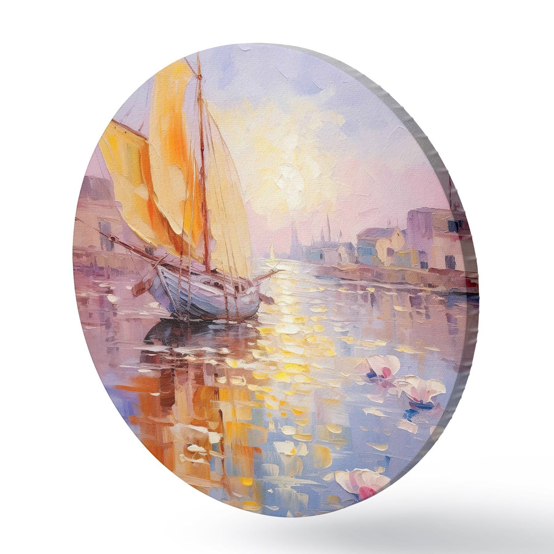 Runde Gemälde Segeln in den bunten Sonnenuntergang r37882
