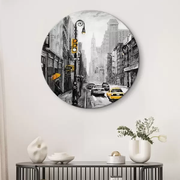 Runde Gemälde Regentag auf den Straßen der Stadt r37892v1