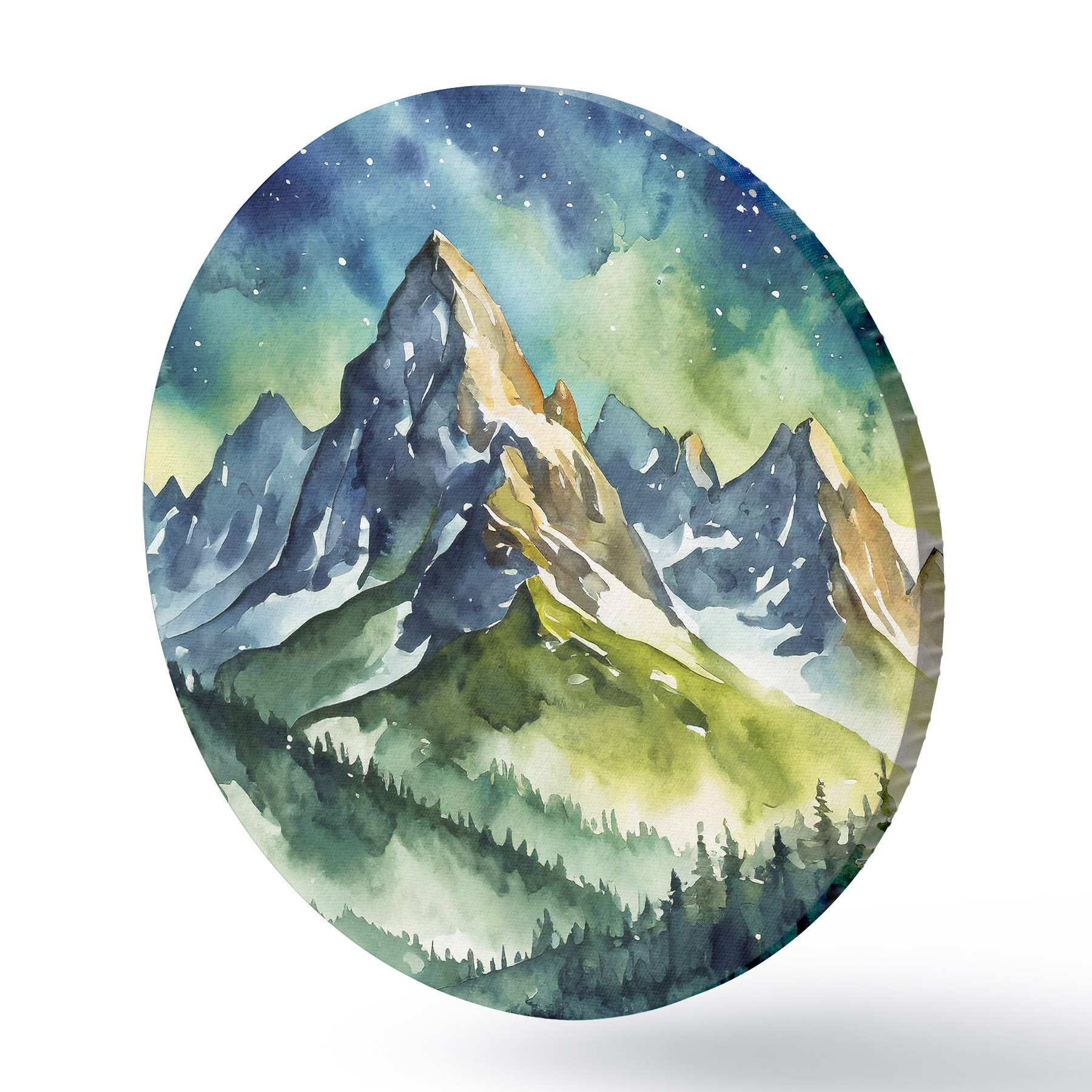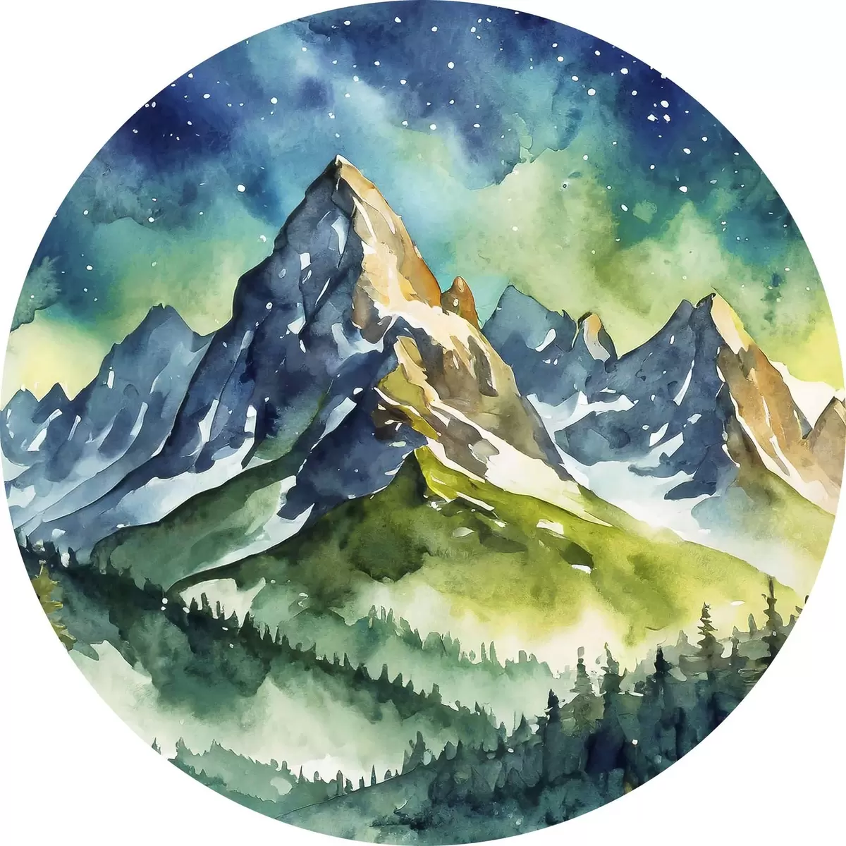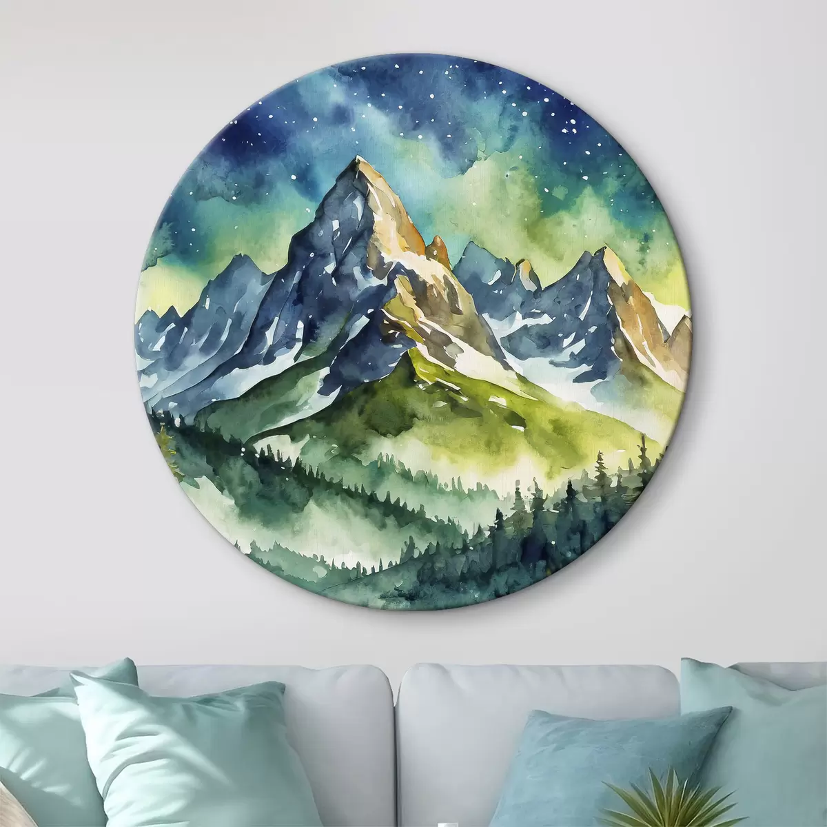 Runde Gemälde Majestätische Berge unter dem Sternenhimmel r37944