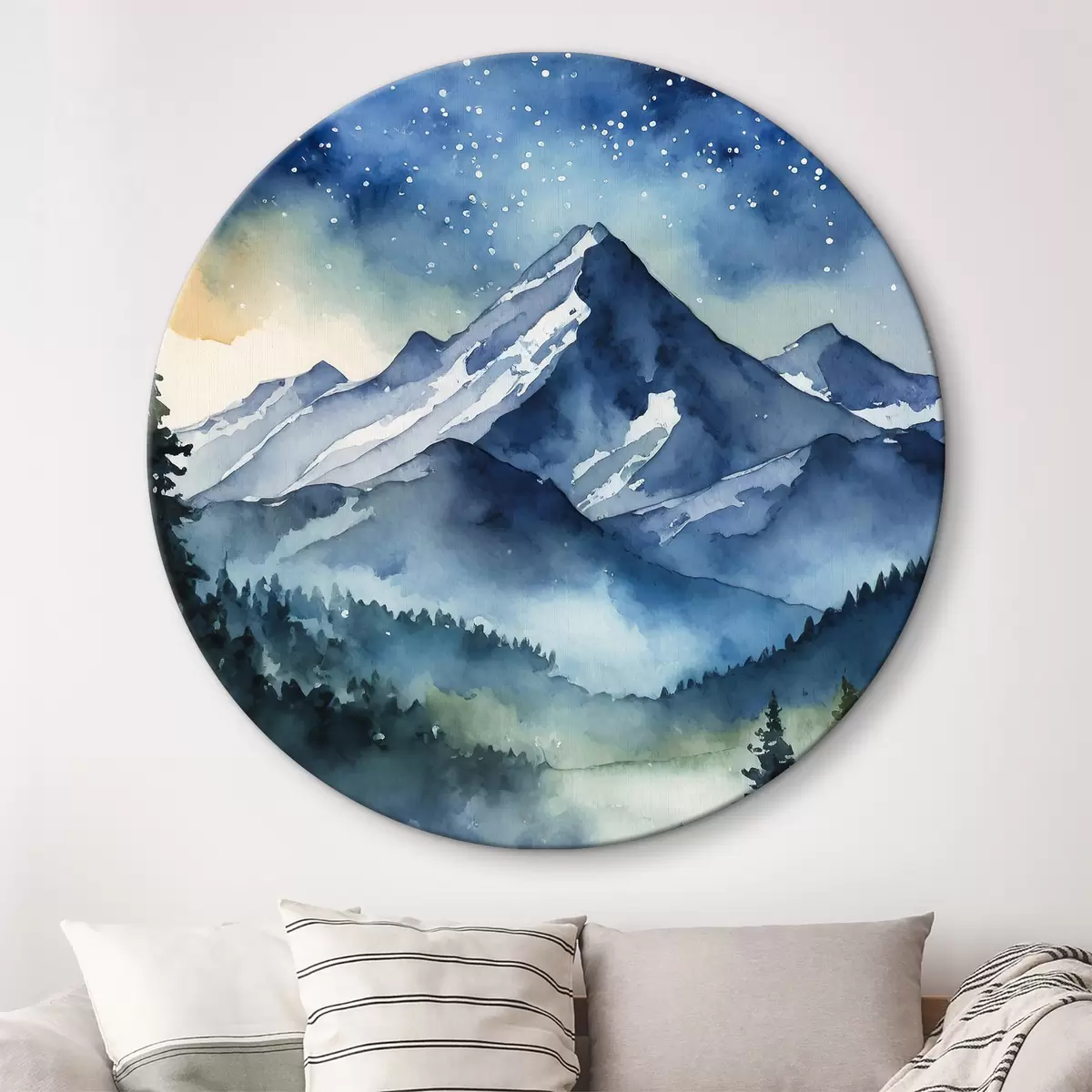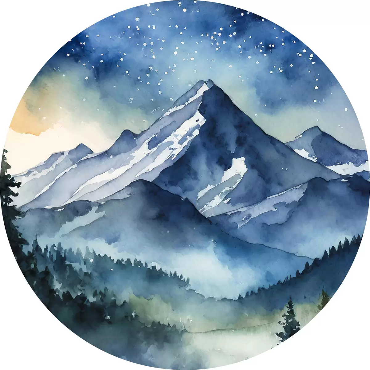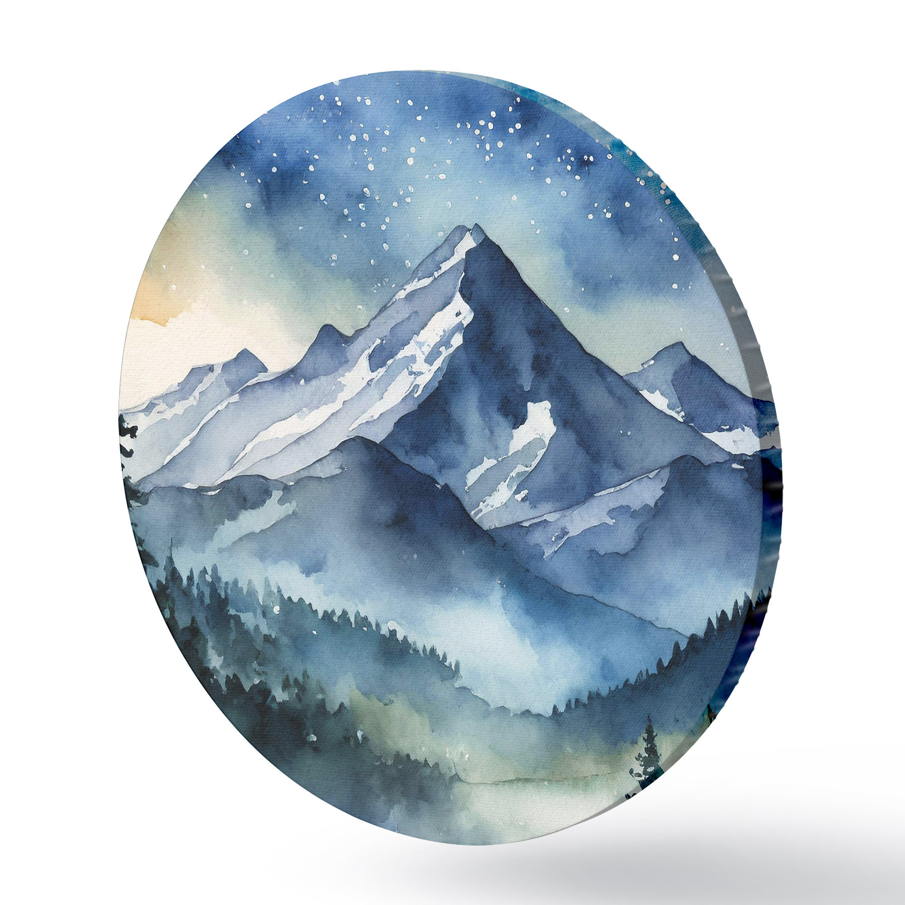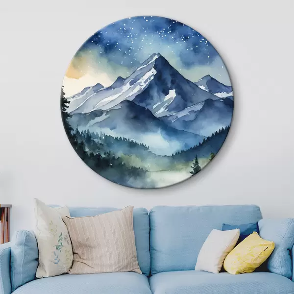 Runde Gemälde Majestätische Berge unter dem Sternenhimmel r37945