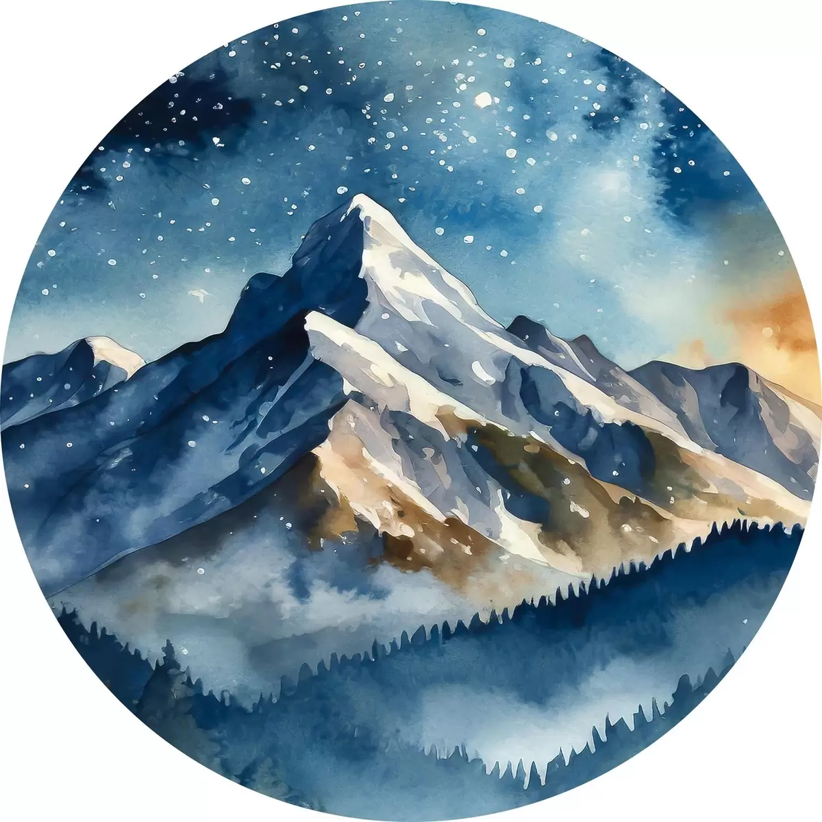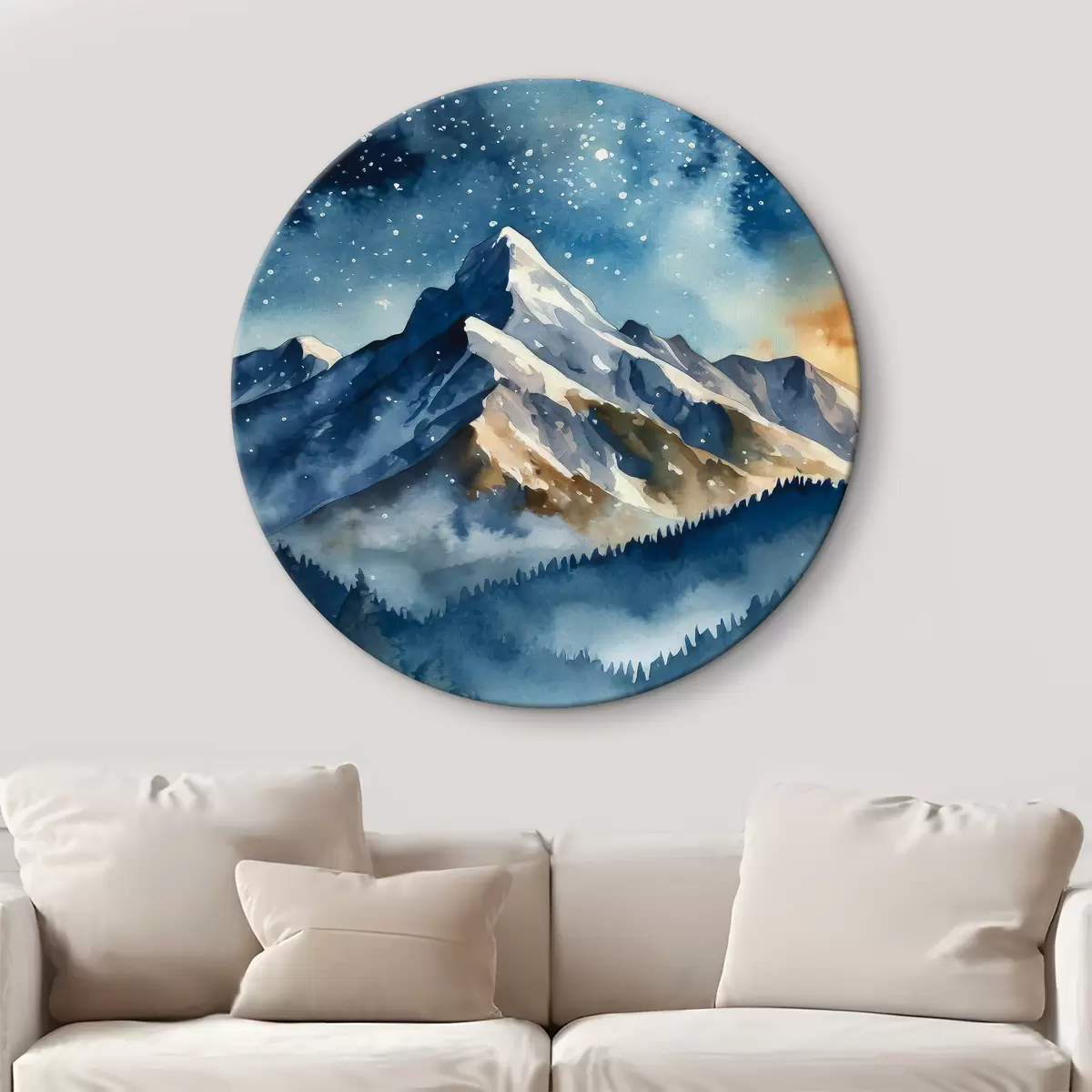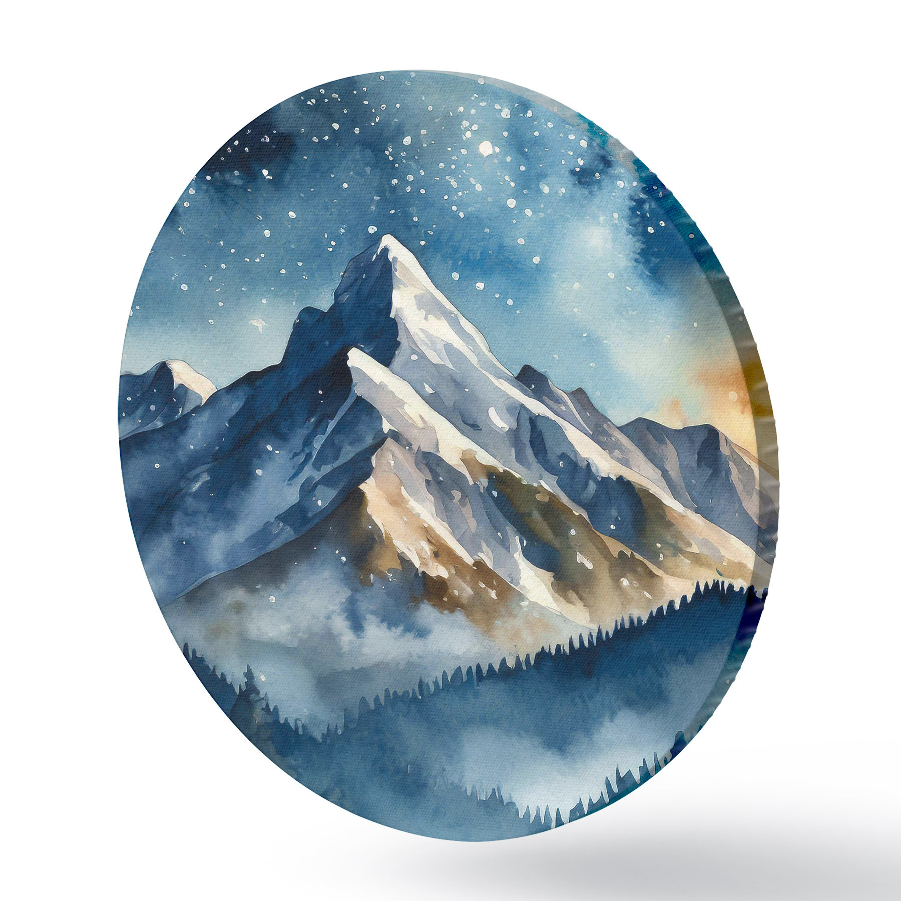 Runde Gemälde Majestätische Berge unter dem Sternenhimmel r37947