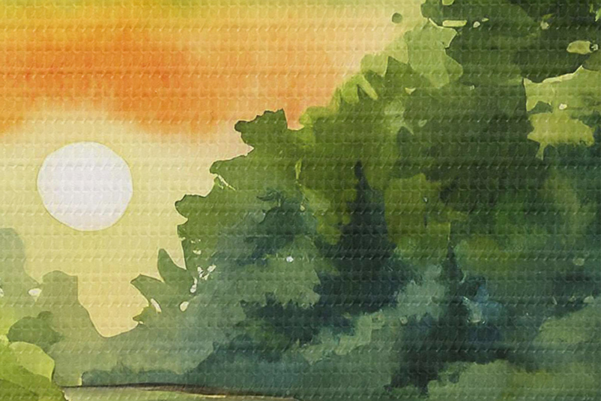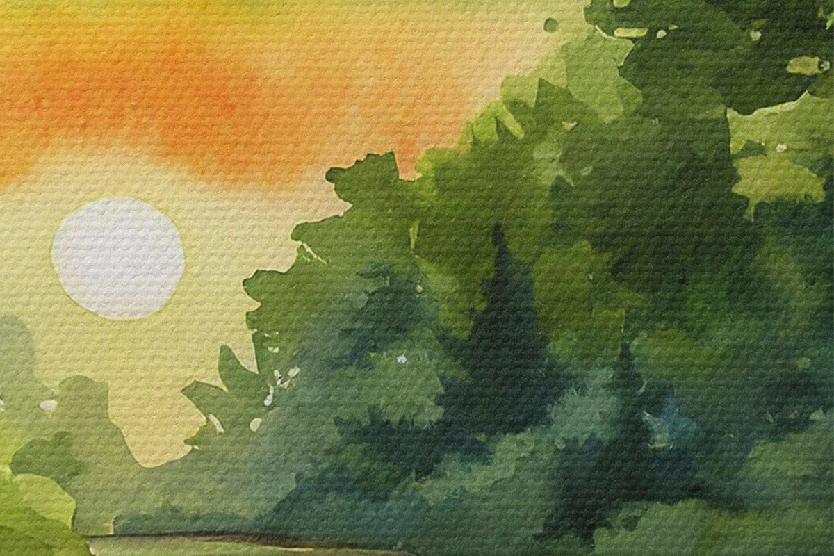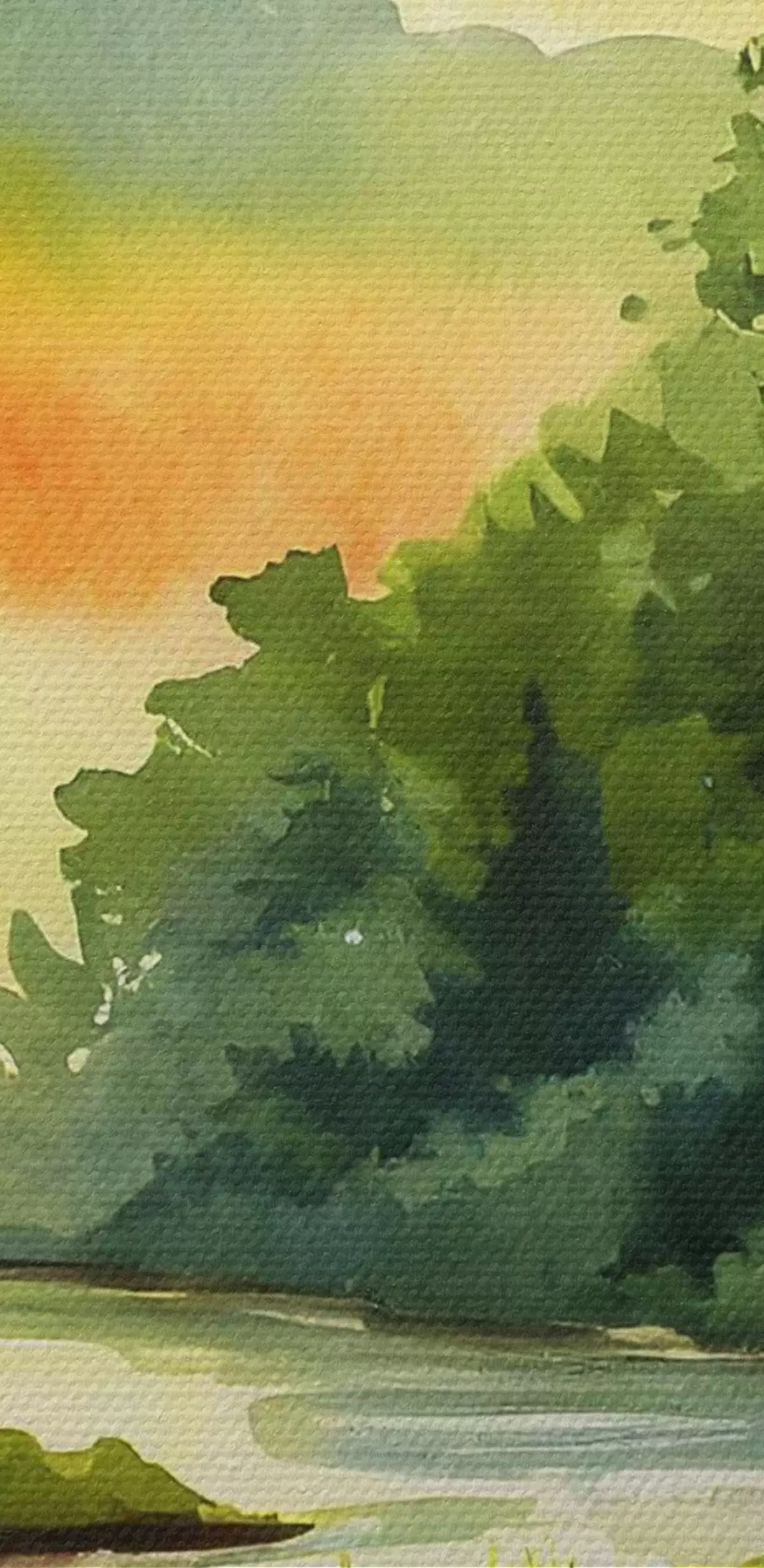 Bild Sonnenuntergang am Fluss, Wald, Aquarell, Sonnenuntergang, grün, Natur Nr r37949