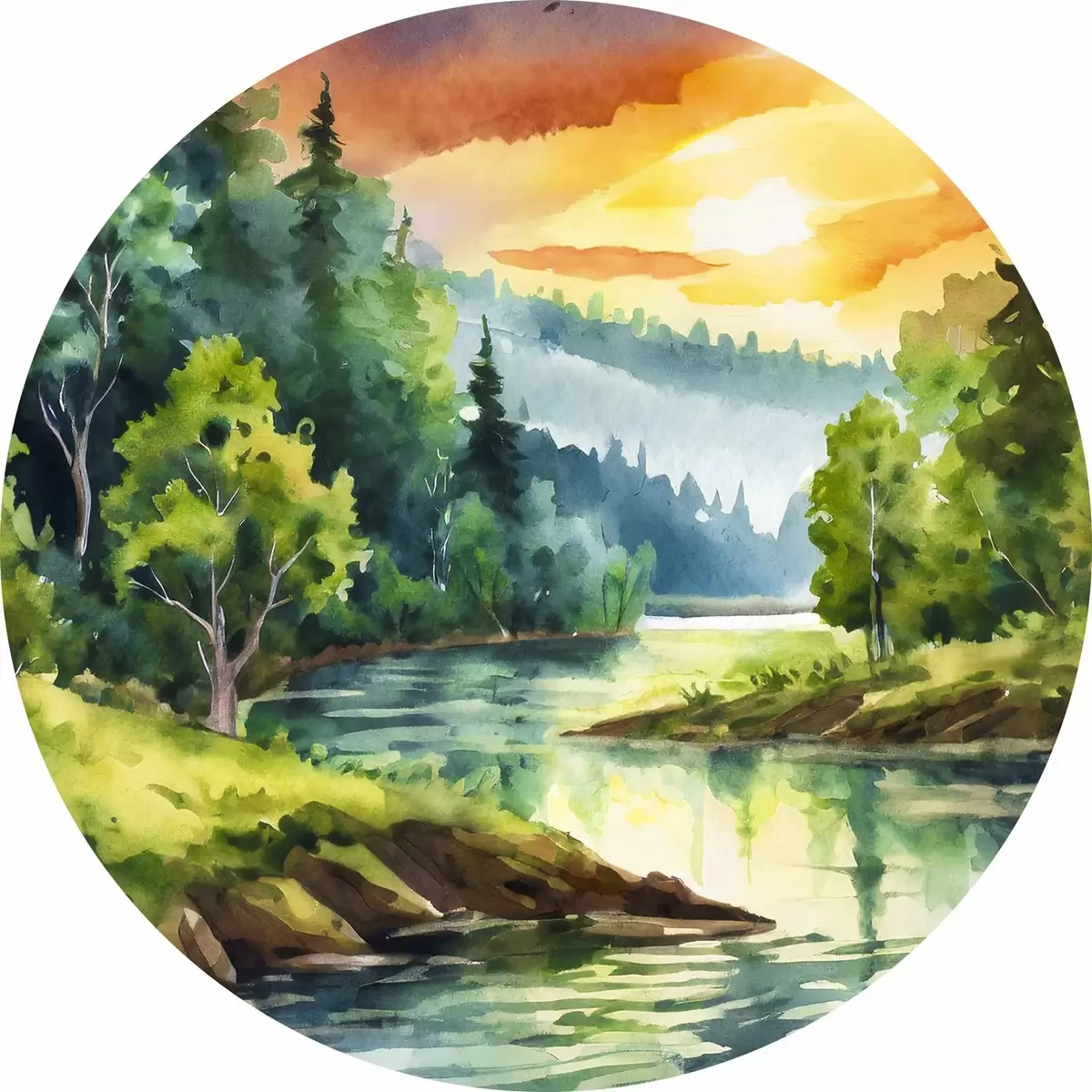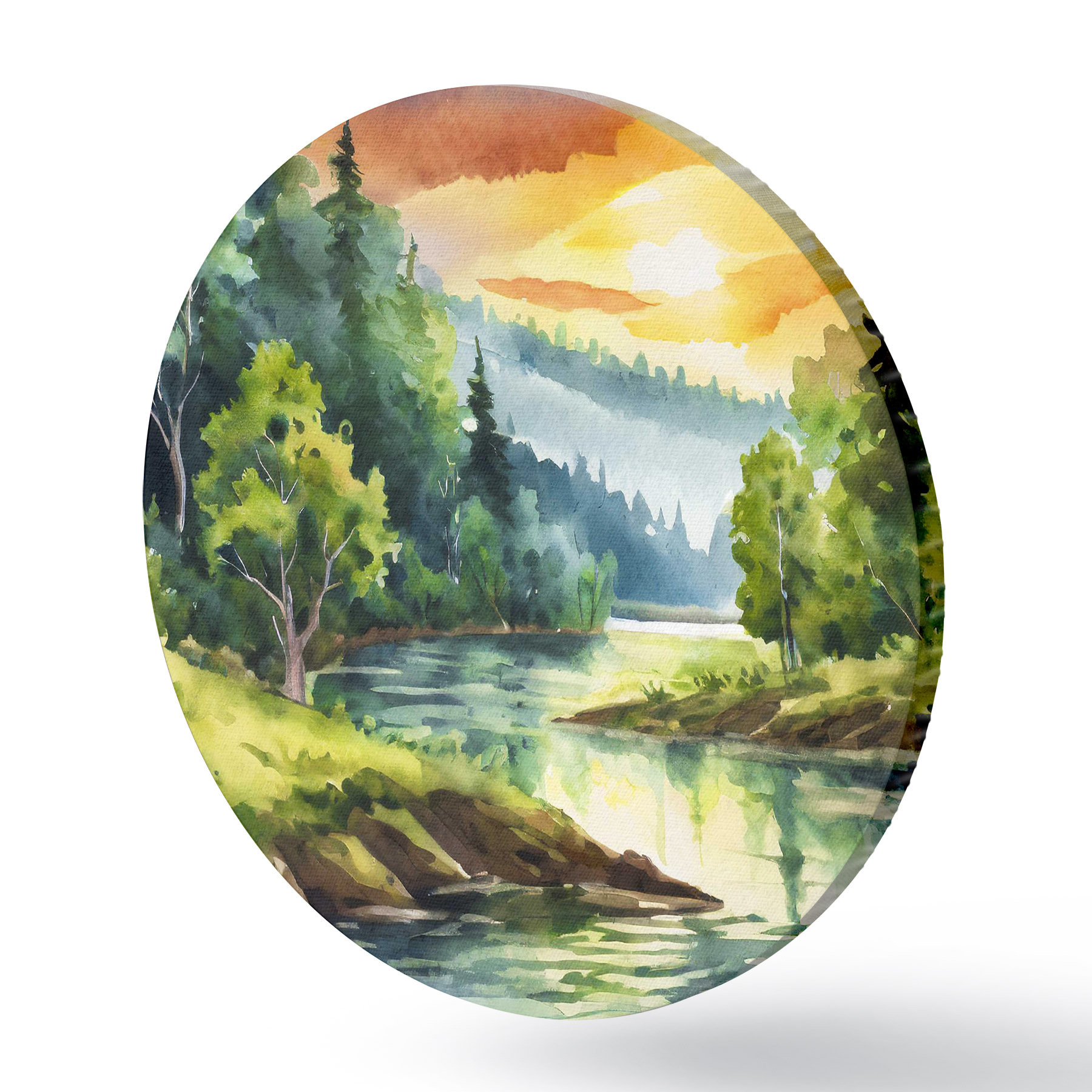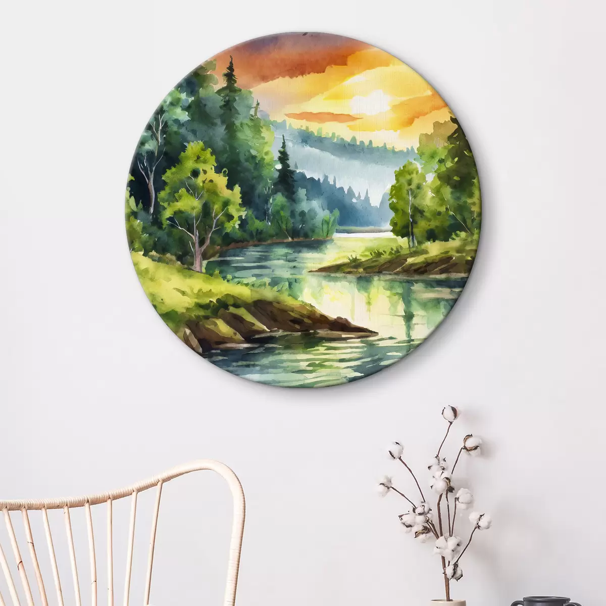 Runde Gemälde Ruhige Gewässer unter einem bunten Himmel r37951