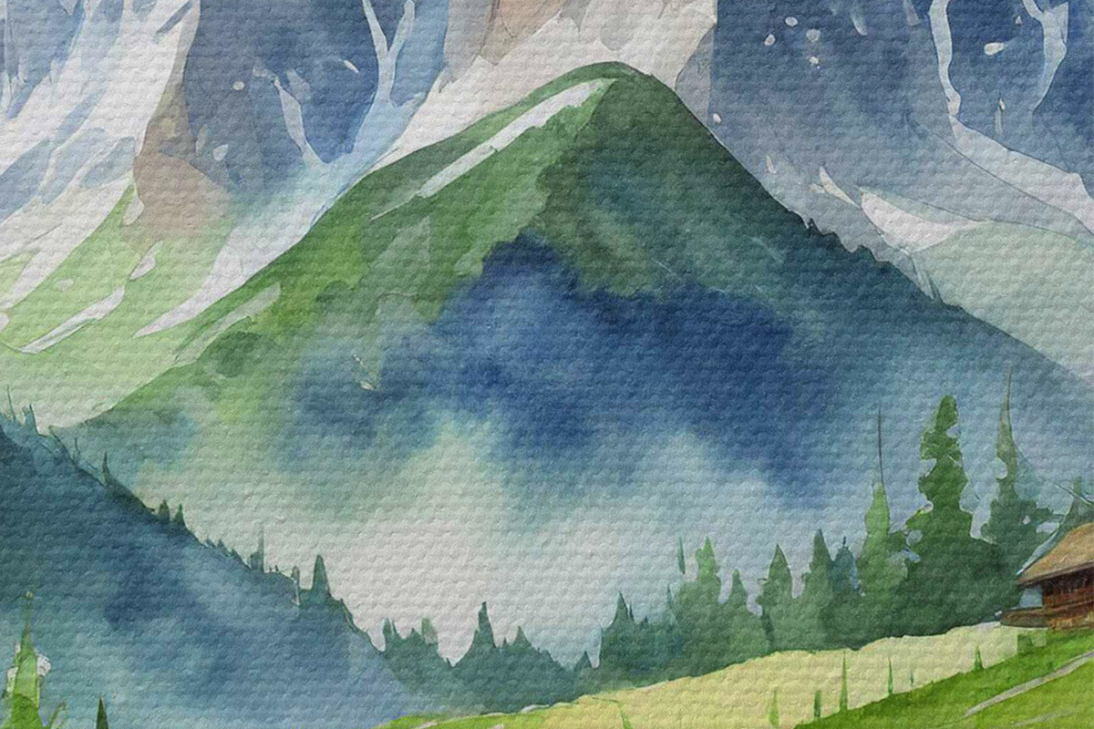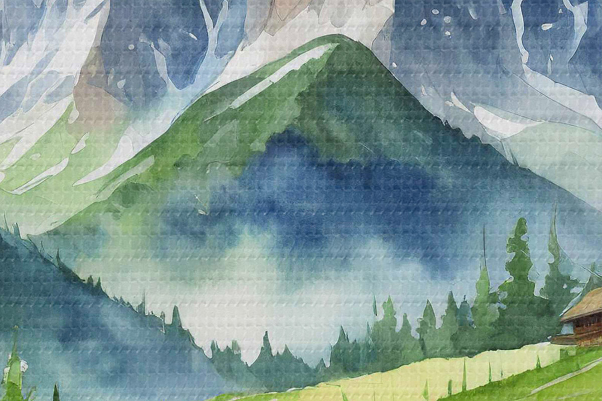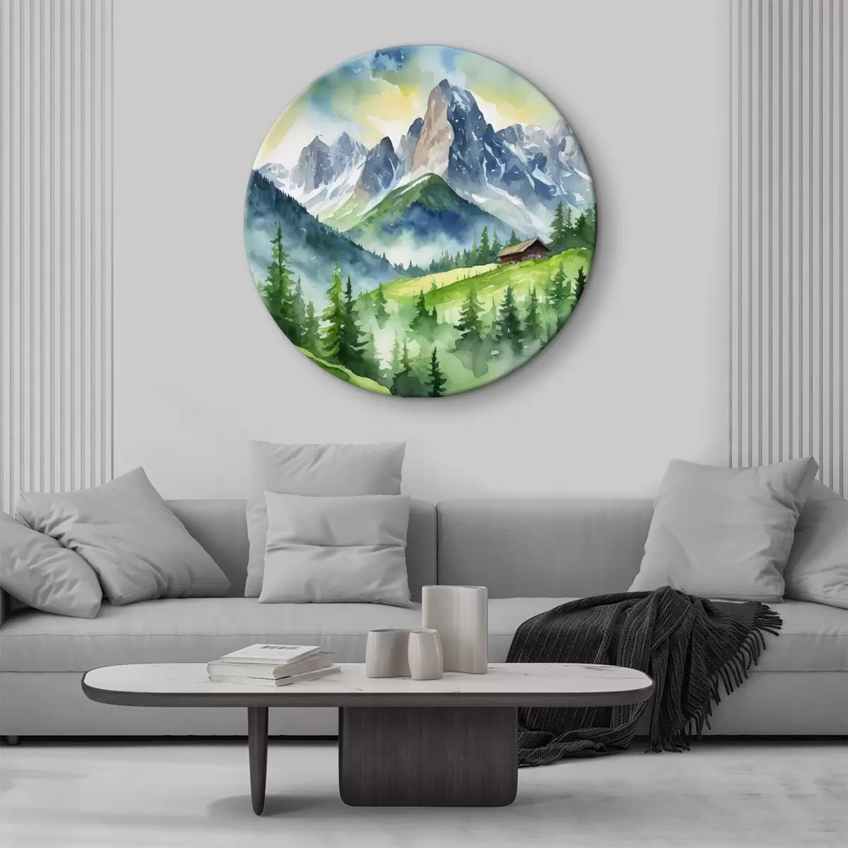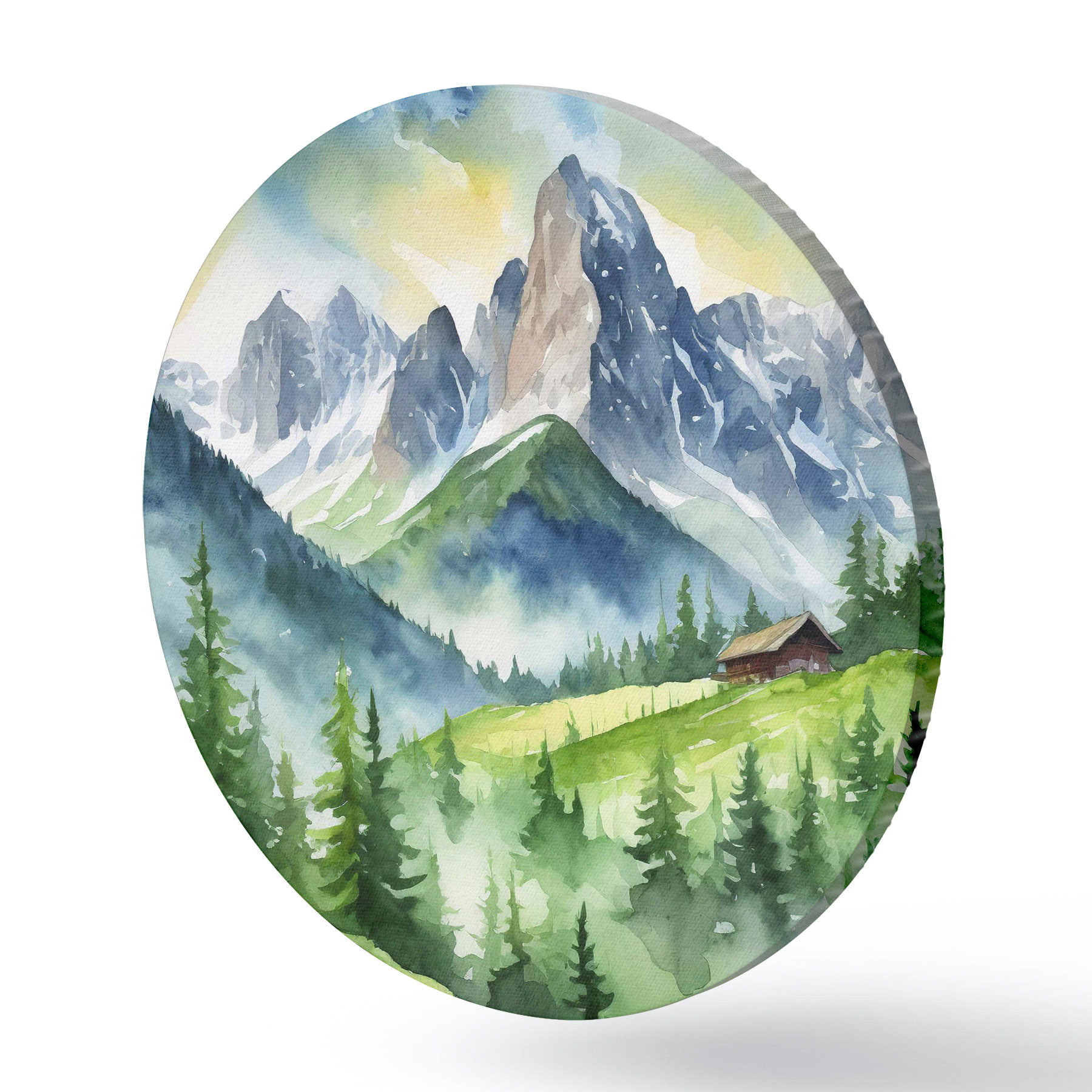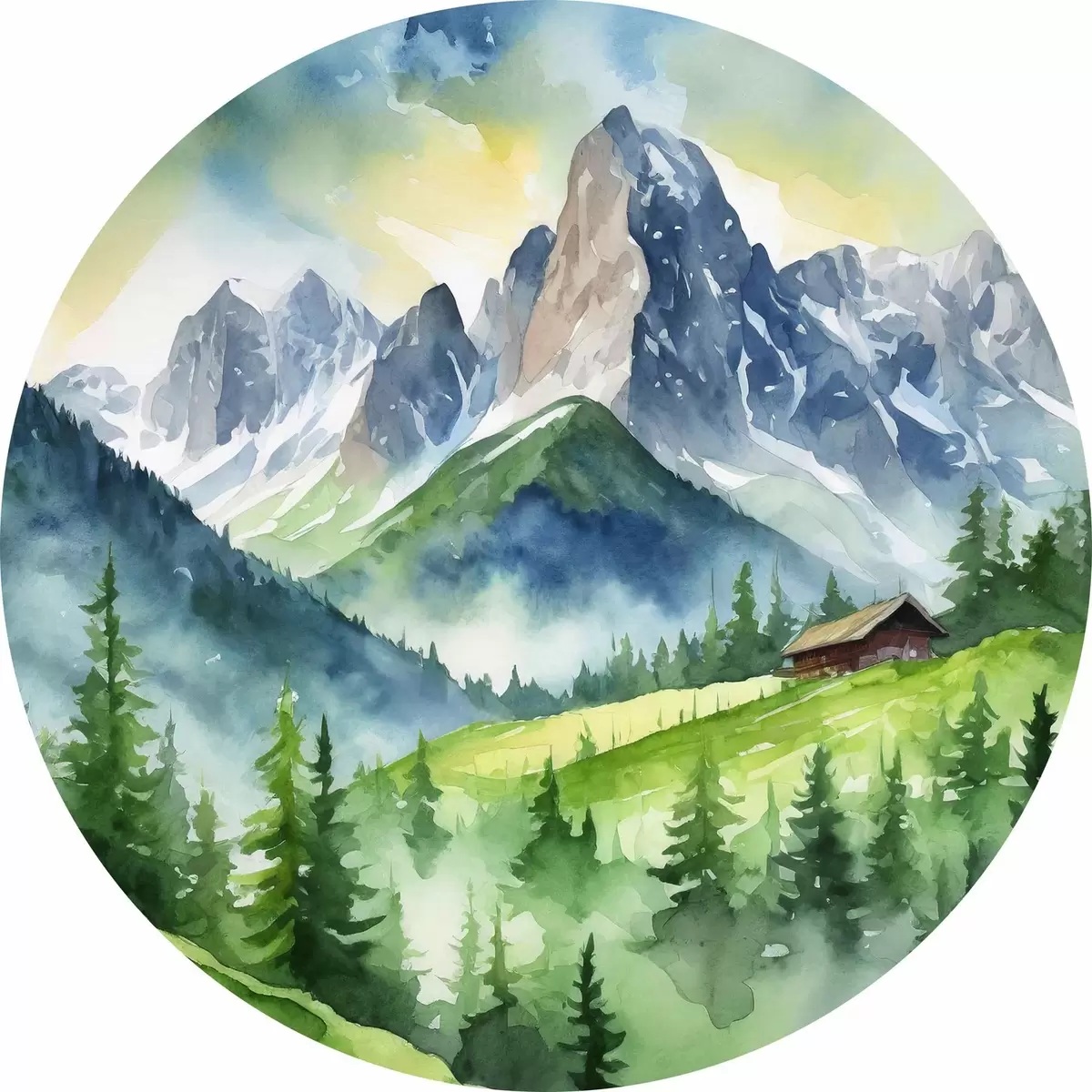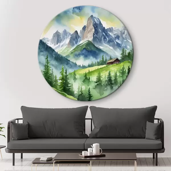Runde Gemälde Majestätische Berge unter einem sanften Himmel r37959