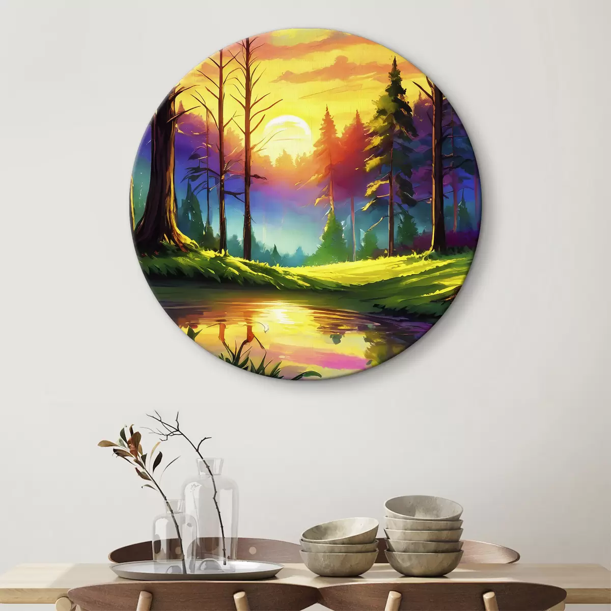 Runde Gemälde Spiegelung des Sonnenuntergangs im Fluss r37996