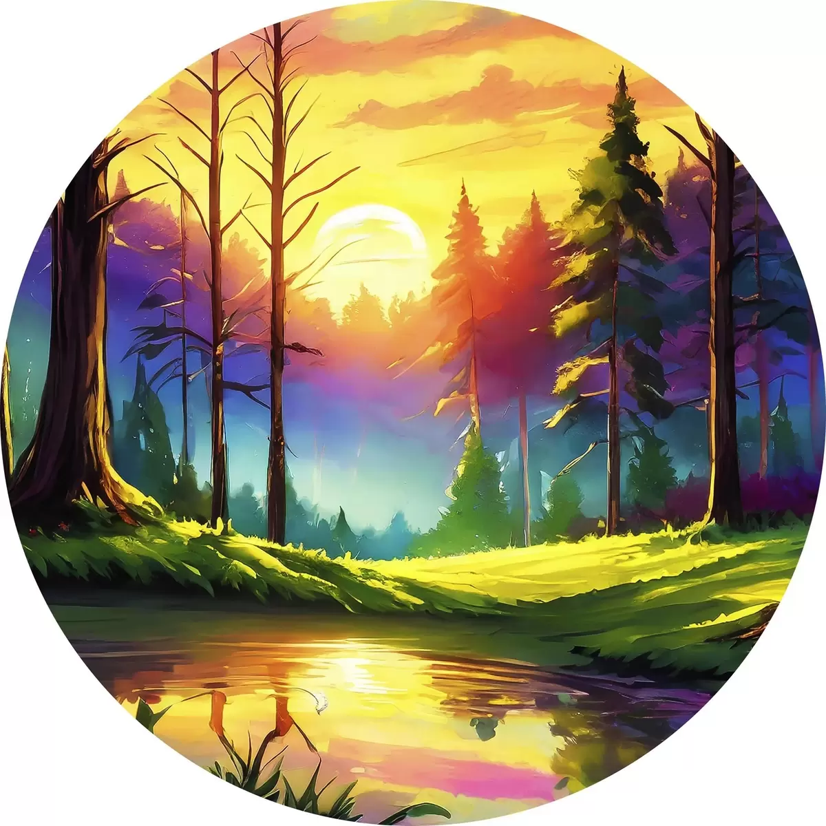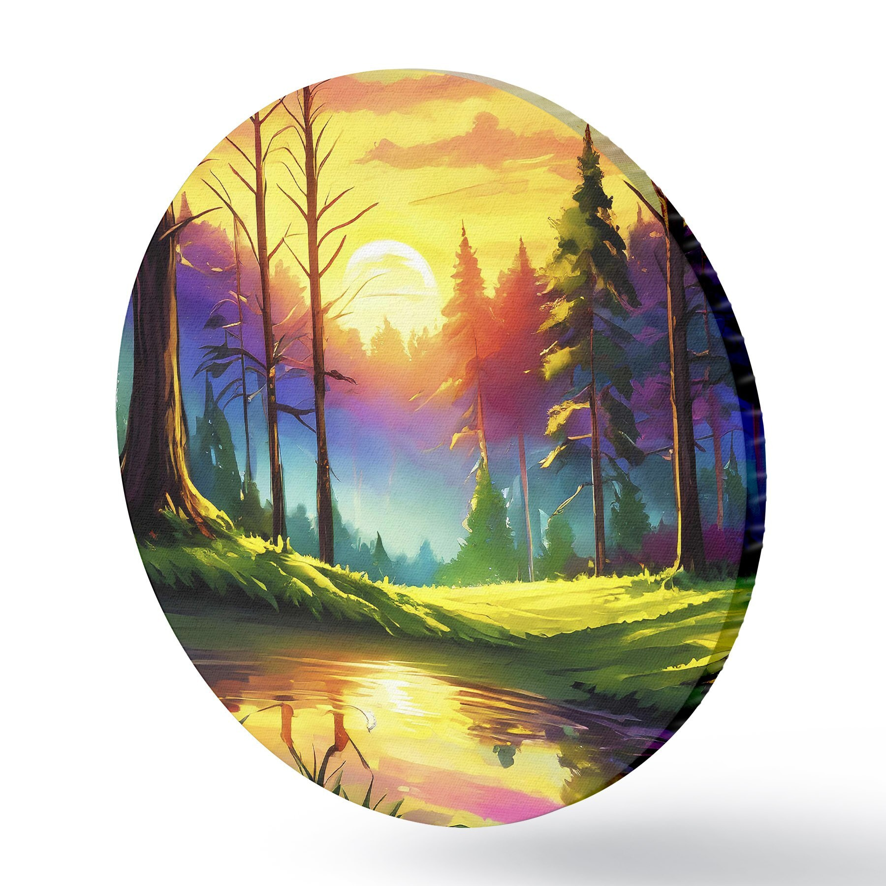 Runde Gemälde Spiegelung des Sonnenuntergangs im Fluss r37996