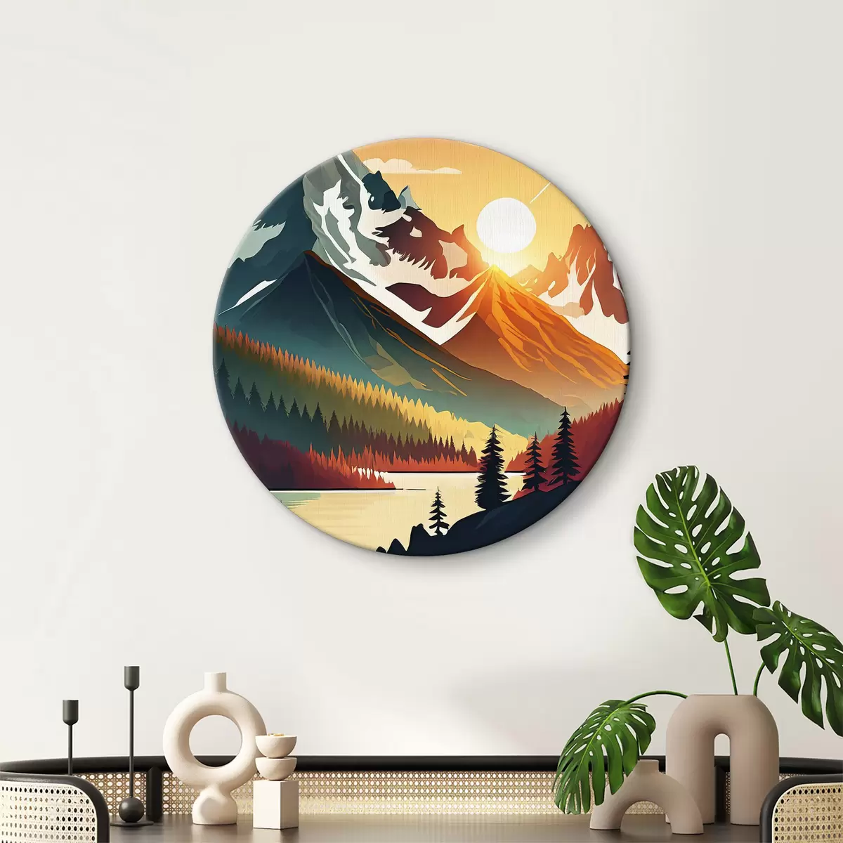 Runde Gemälde Majestätische Berge unter einem strahlenden Himmel r38006