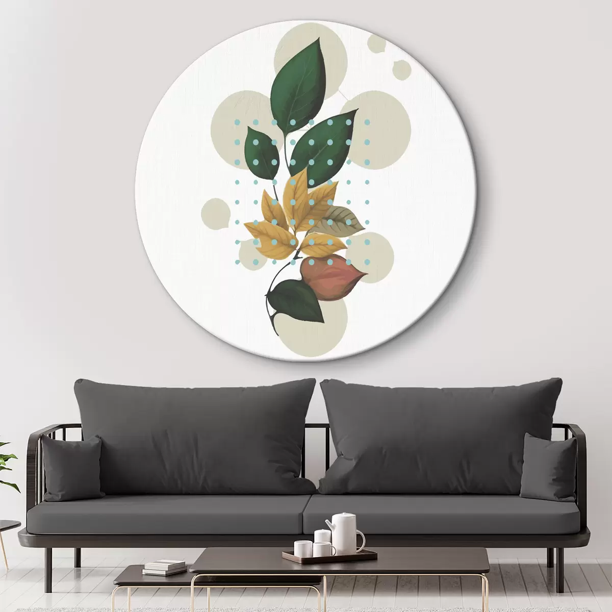 Runde Gemälde Grünzeug, Minimalismus, Blätter, Natur r38023