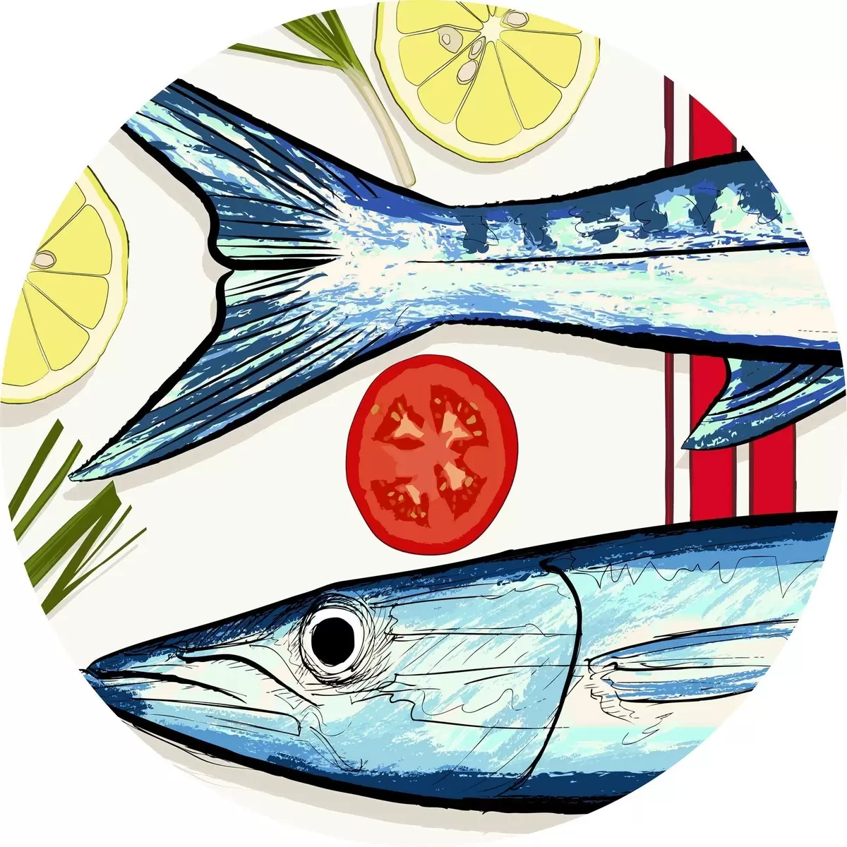 Runde Gemälde Frischer Fisch mit einer hellen Füllung r38037