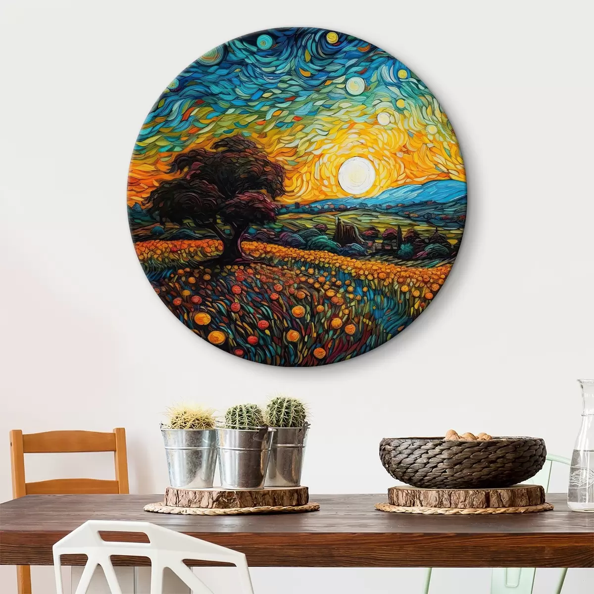 Runde Gemälde Heller Sonnenuntergang r38059
