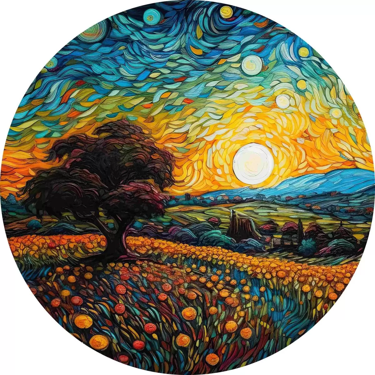 Runde Gemälde Heller Sonnenuntergang r38059