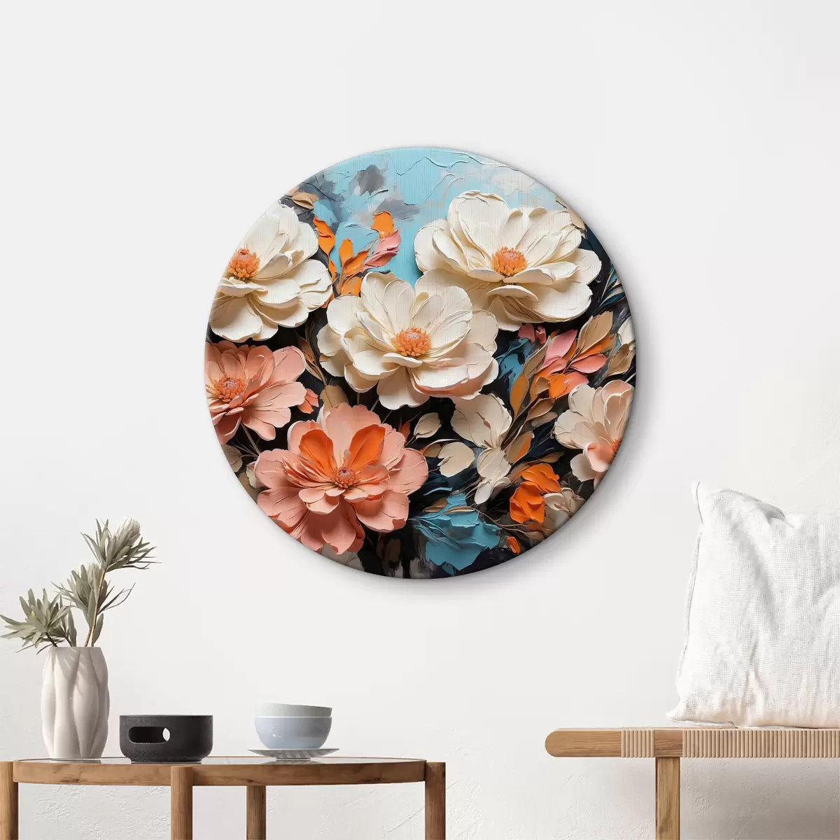Runde Gemälde Leuchtend blühend in zarten Pastelltönen r38064