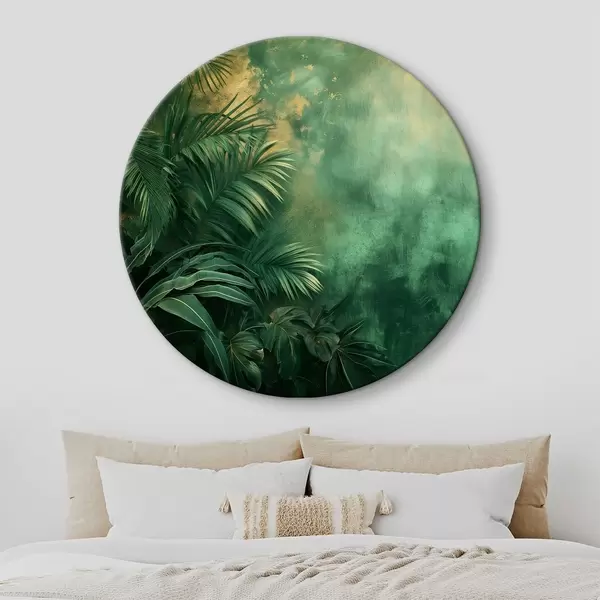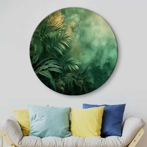 Runde Gemälde Tropische Büsche im Grunge-Stil r38086