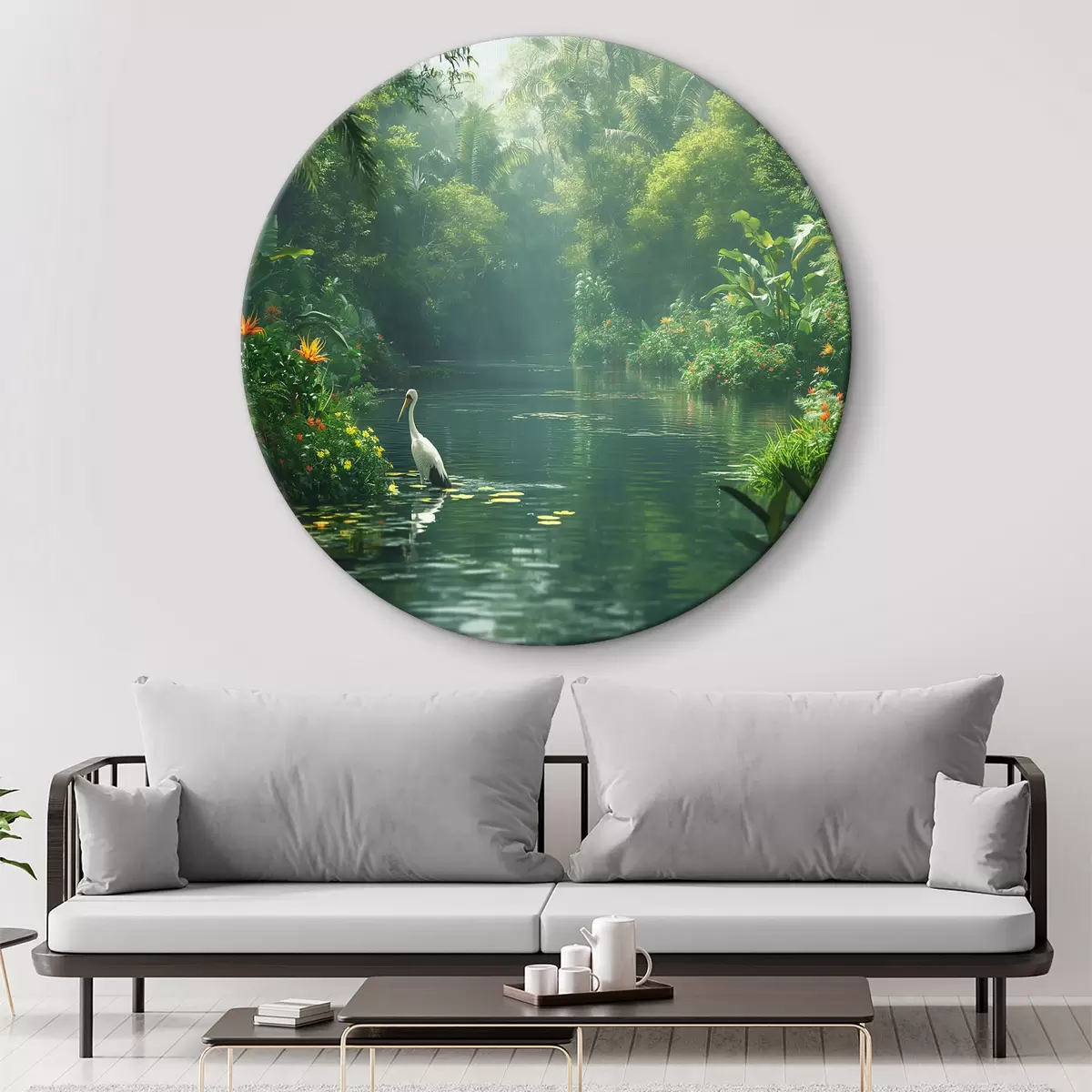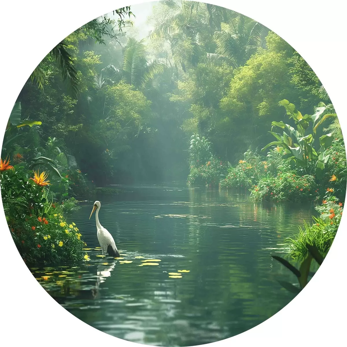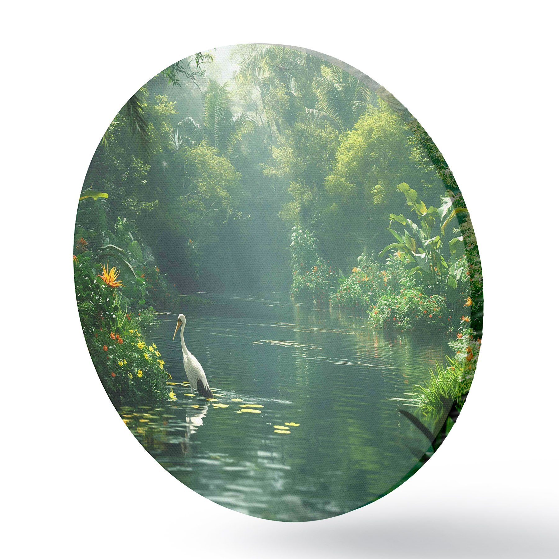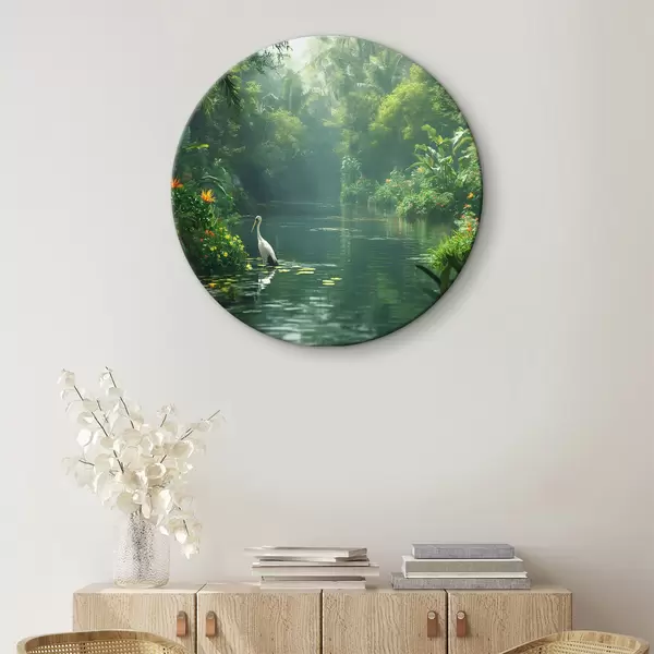 Runde Gemälde Ein See in einem tropischen Wald r38091
