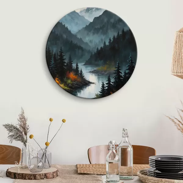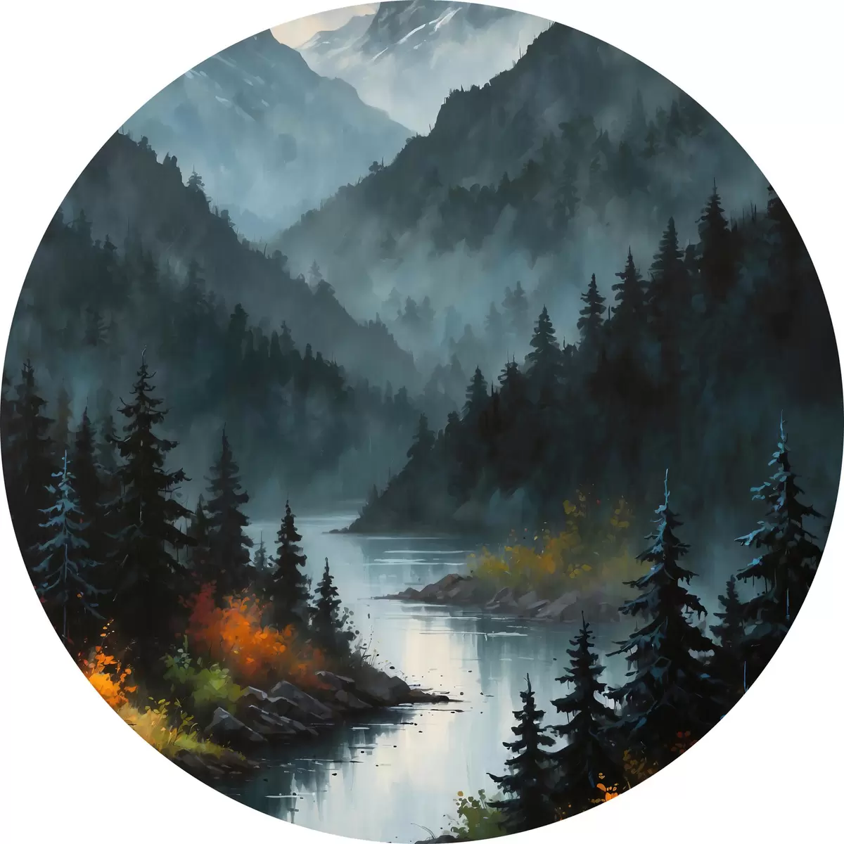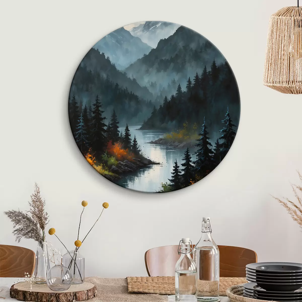 Runde Gemälde Ein Fluss, der durch ein Gebirgstal fließt r38096