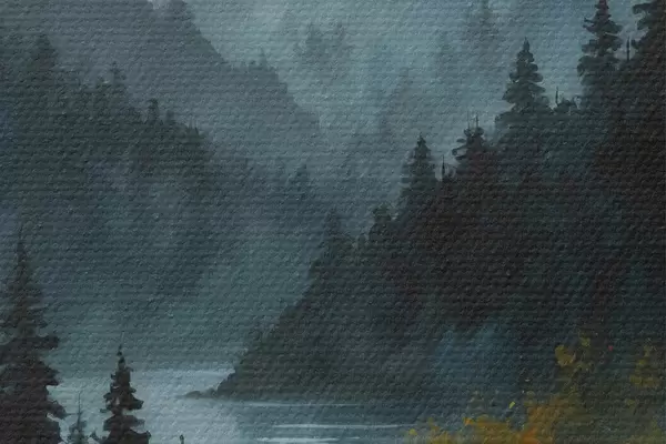 Das feine Fadengeflecht auf dieser Leinwand ähnelt der Oberfläche von professionellen Künstlerleinwänden.