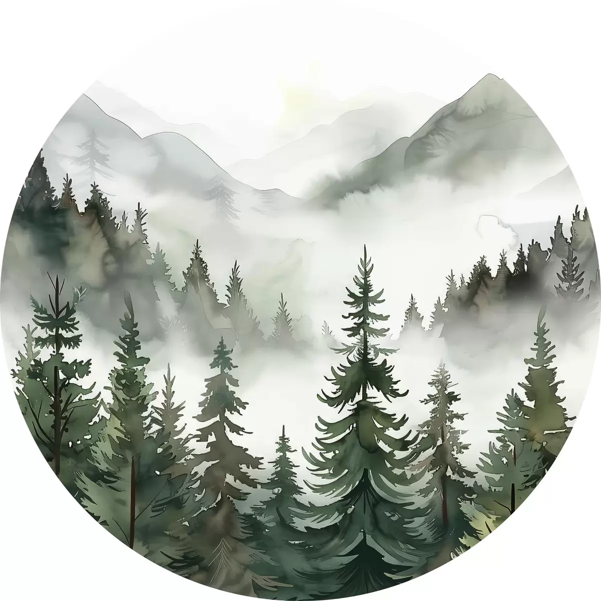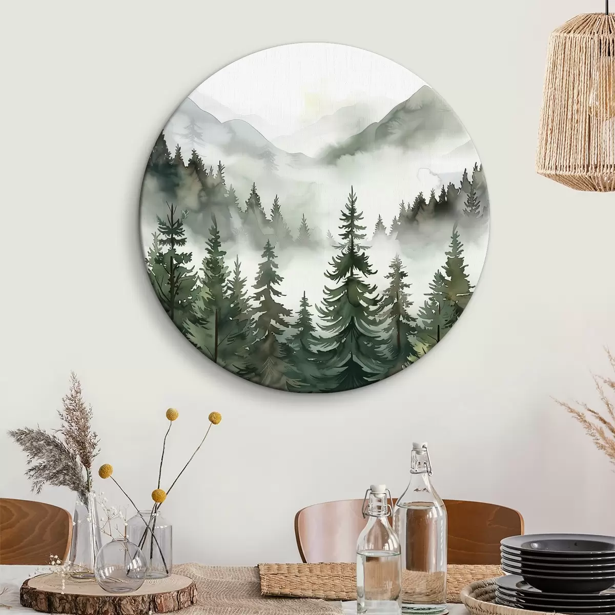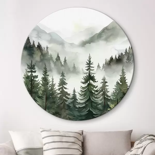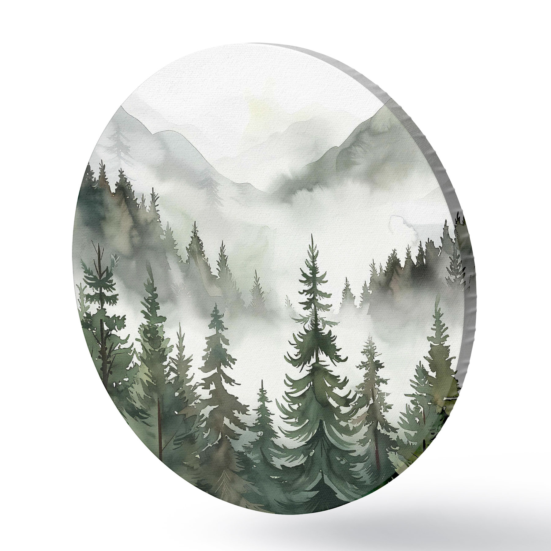 Runde Gemälde Landschaft mit Bäumen und Bergen r38139