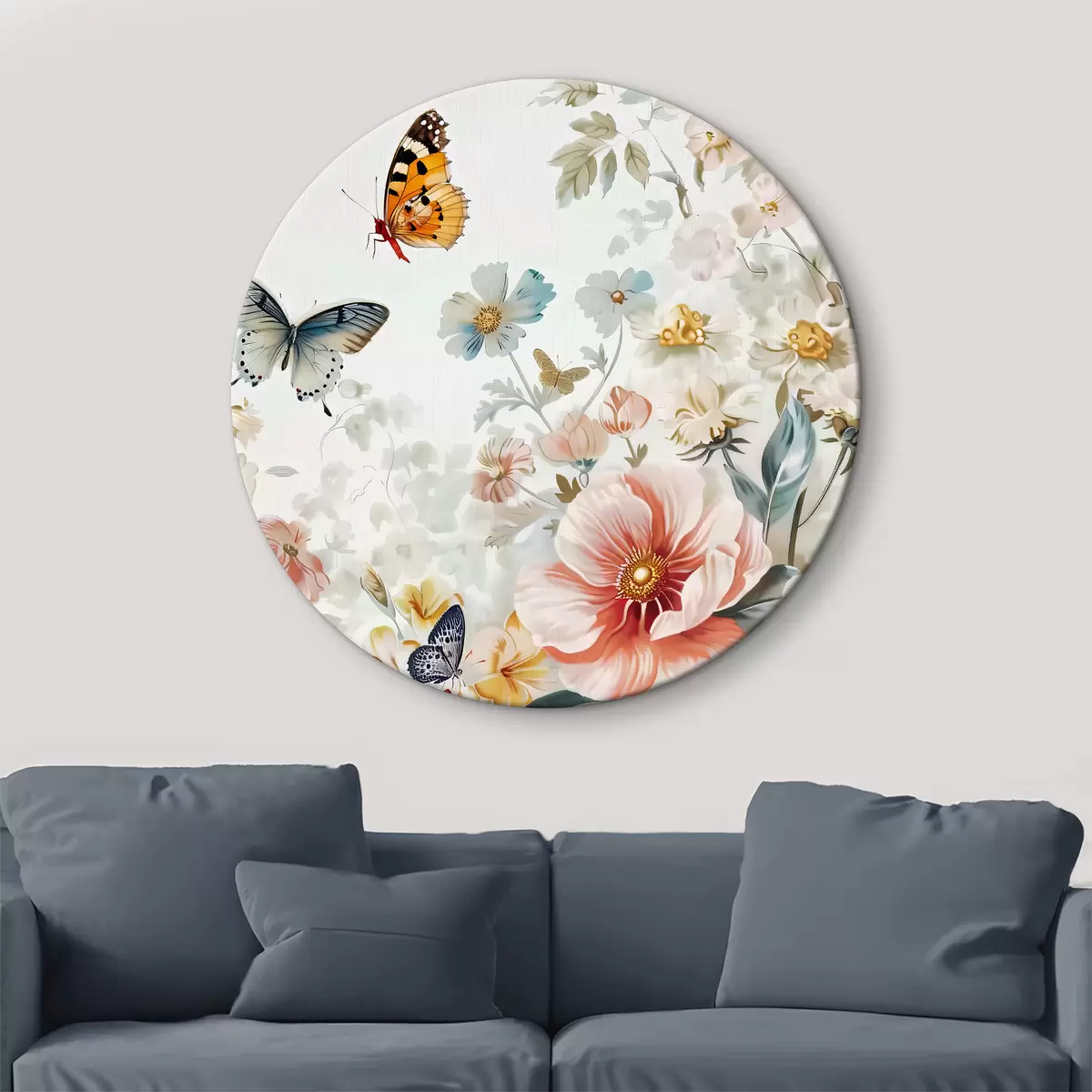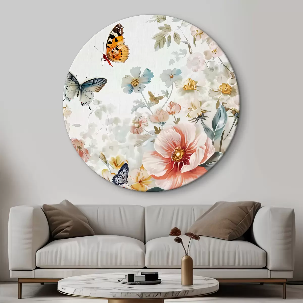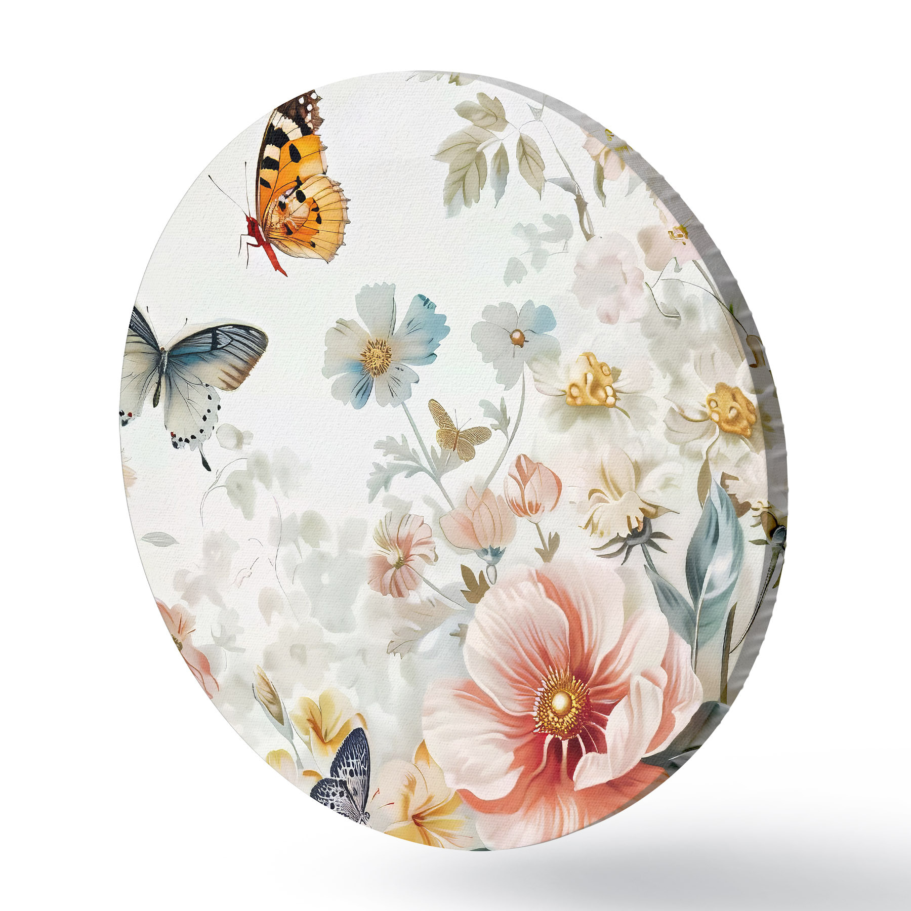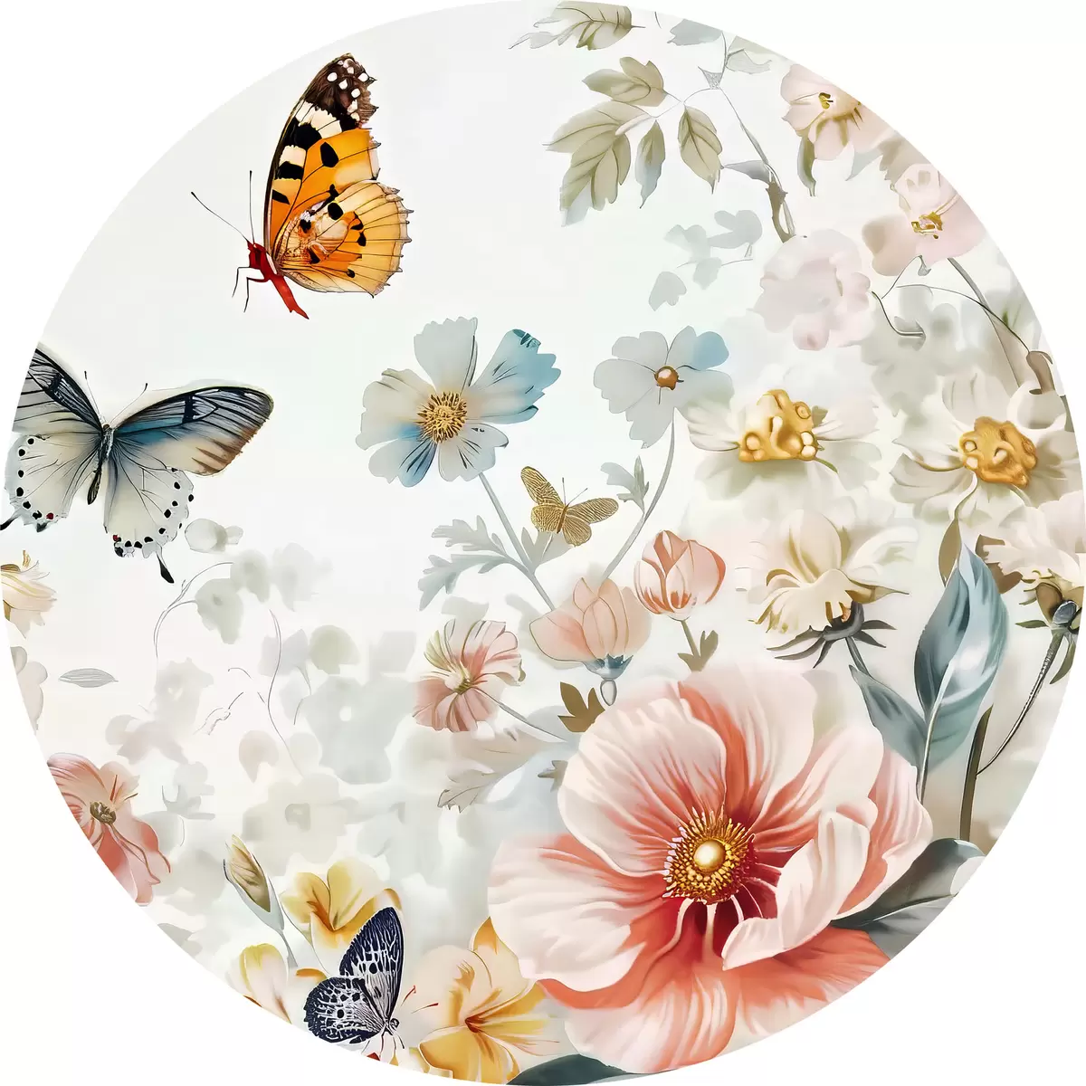 Runde Gemälde Blumen und Schmetterlinge r38152
