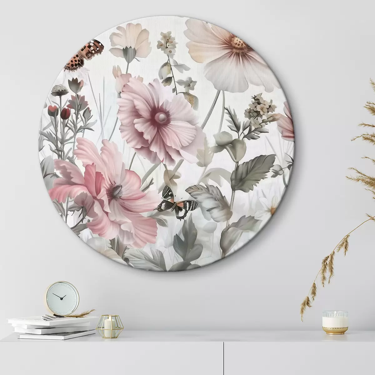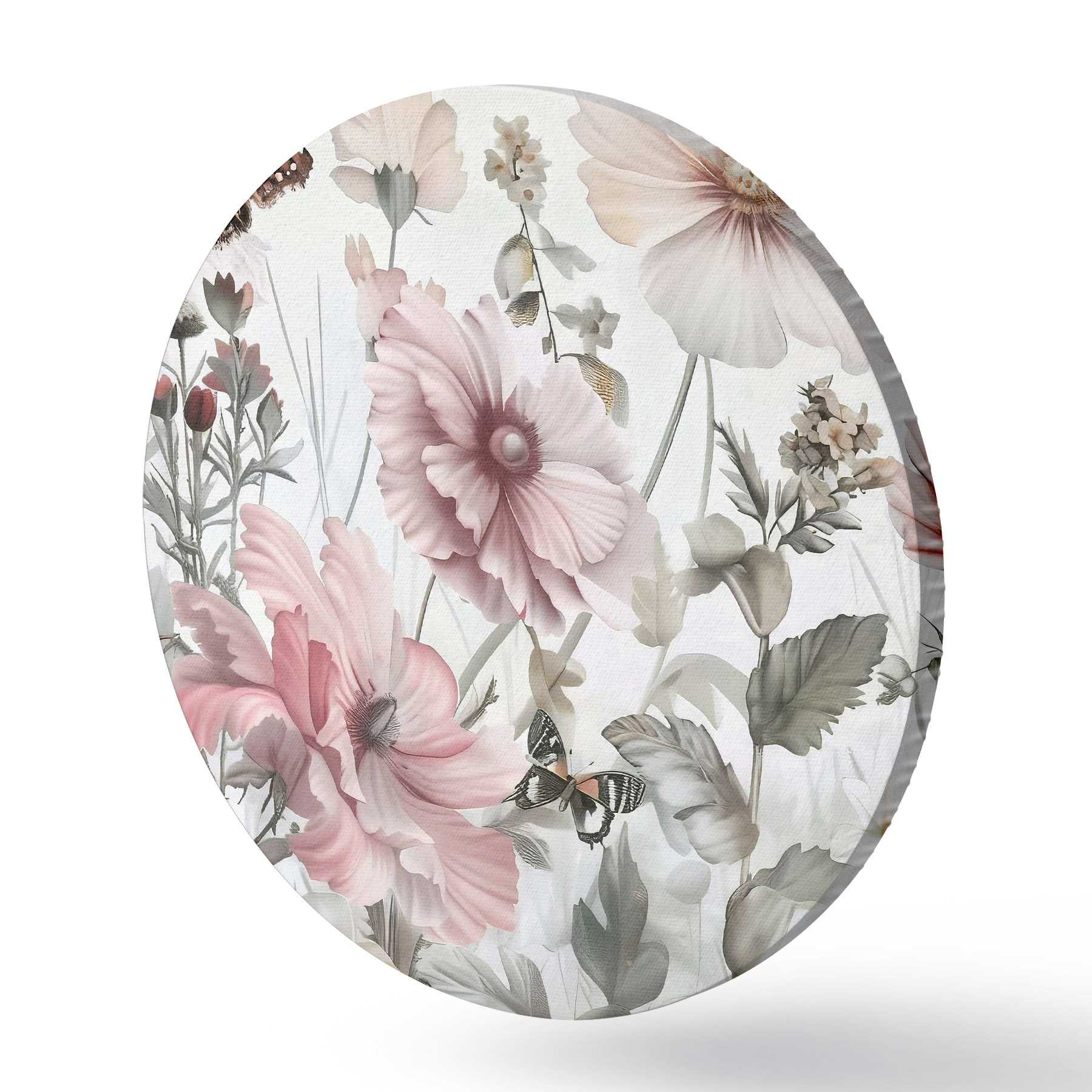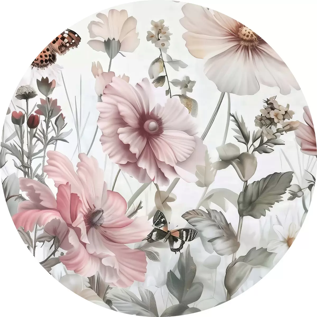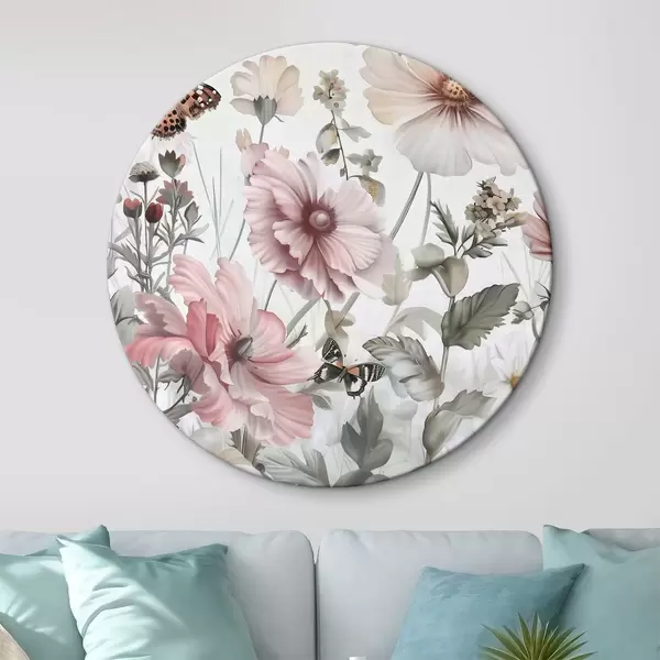 Runde Gemälde Nahaufnahme von Blumen und Schmetterlingen r38153