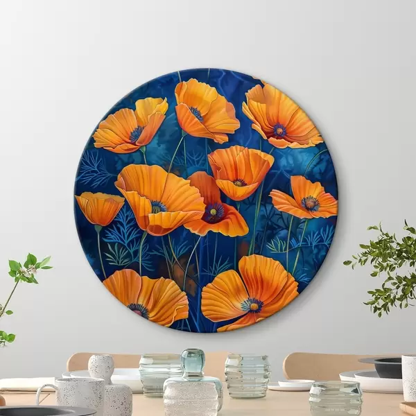 Runde Gemälde Gruppe von orangefarbenen Blumen r38160