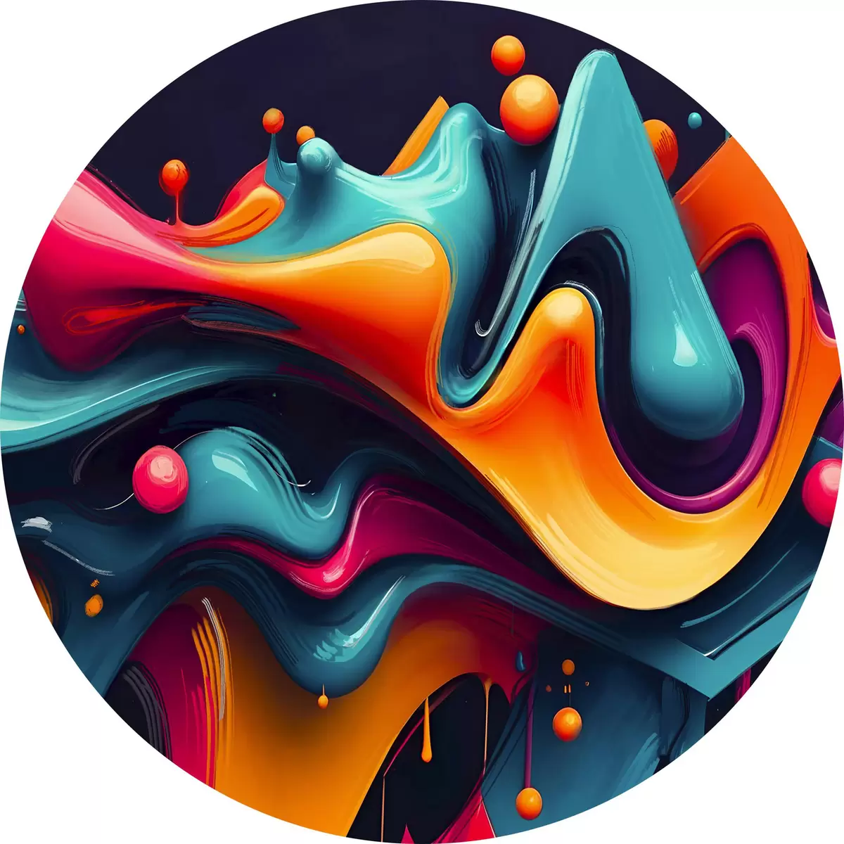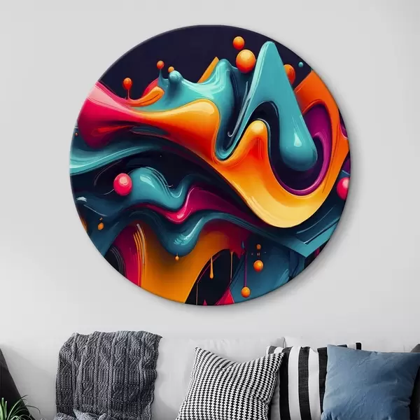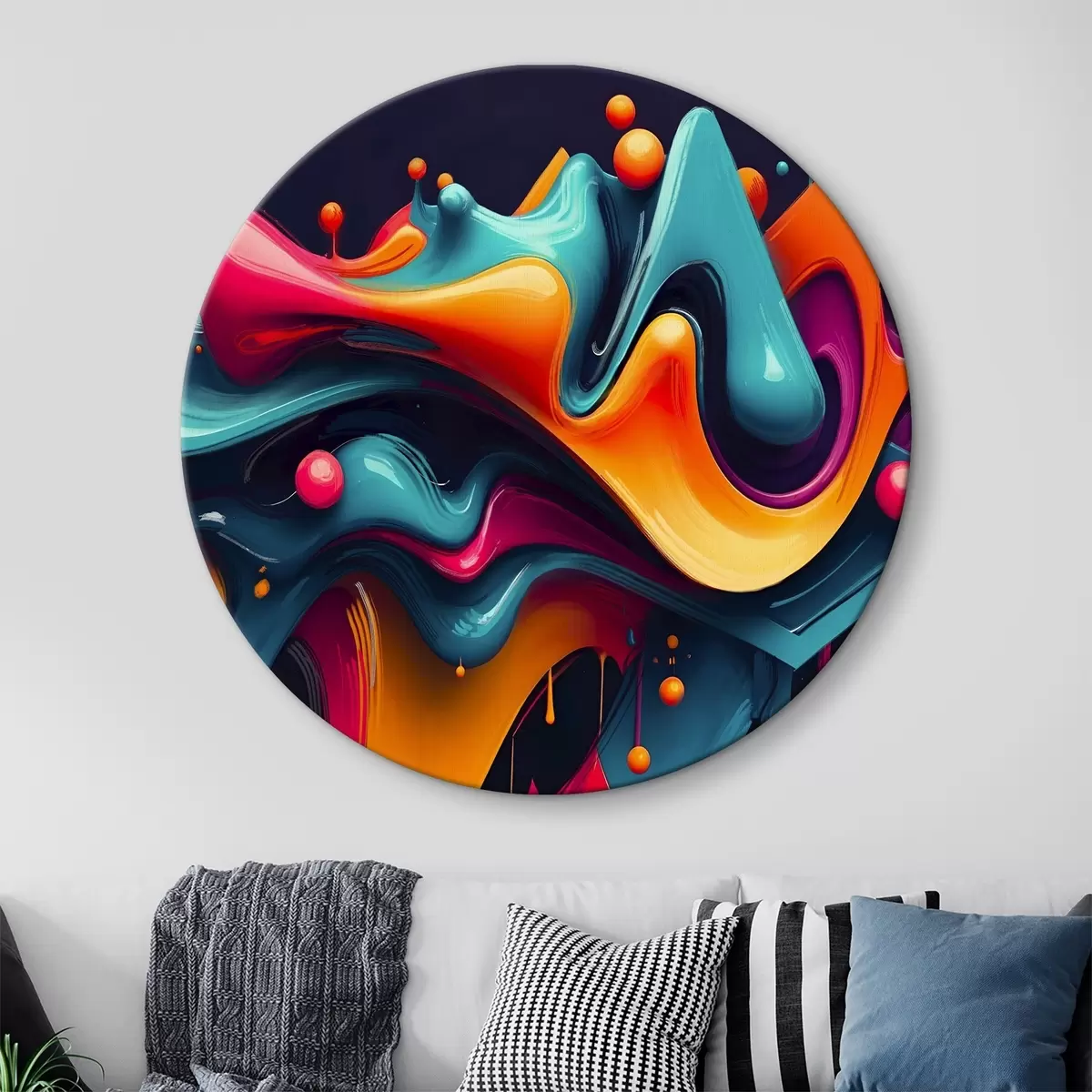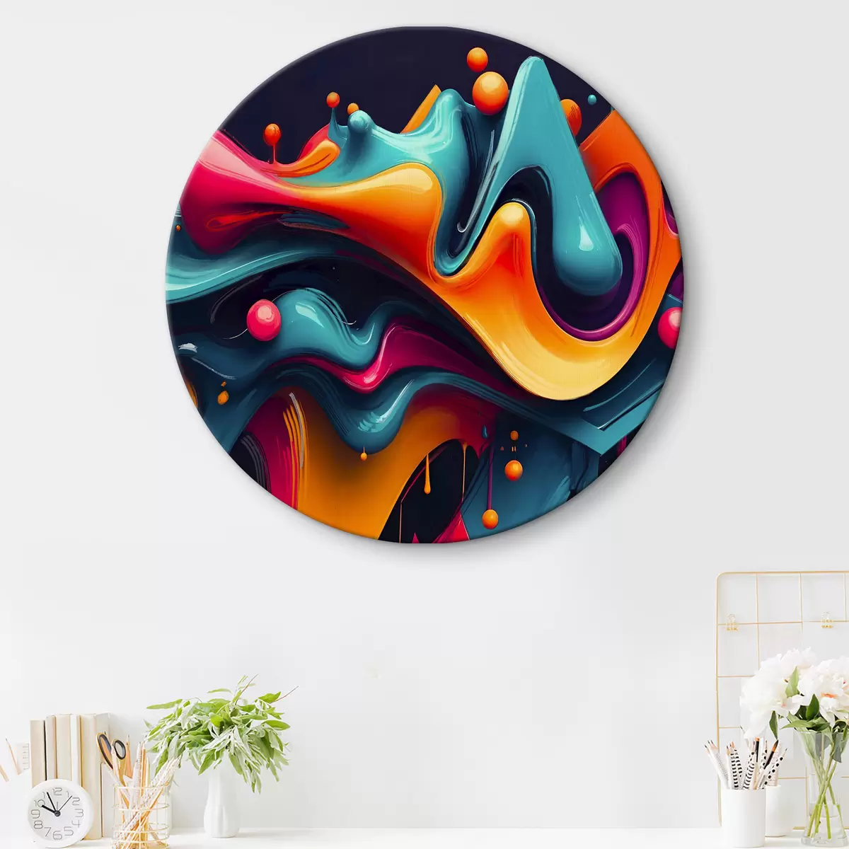 Runde Gemälde Bunte abstrakte fließende Formen mit lebhaften Tönen, dynamische und surreale Komposition r38163