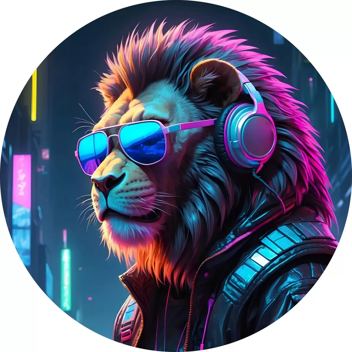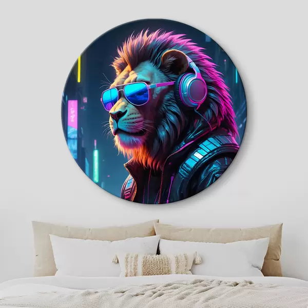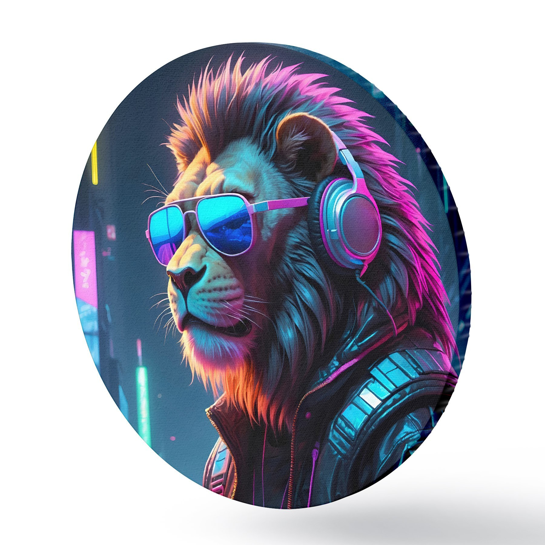 Runde Gemälde Löwe vor hellem Stadthintergrund r38169