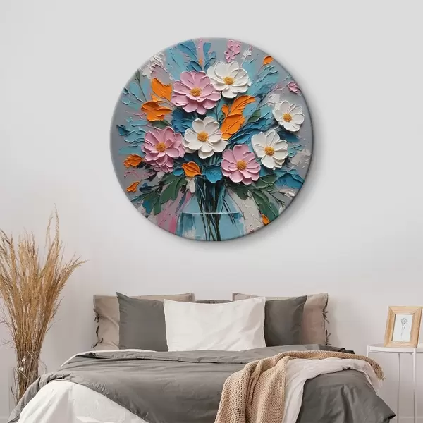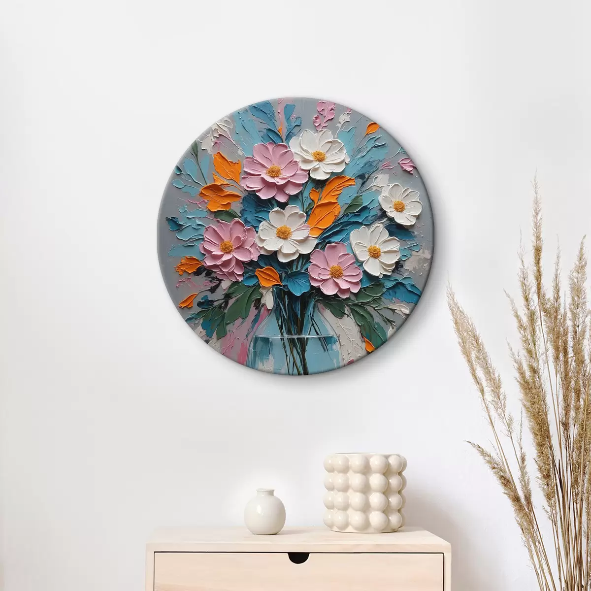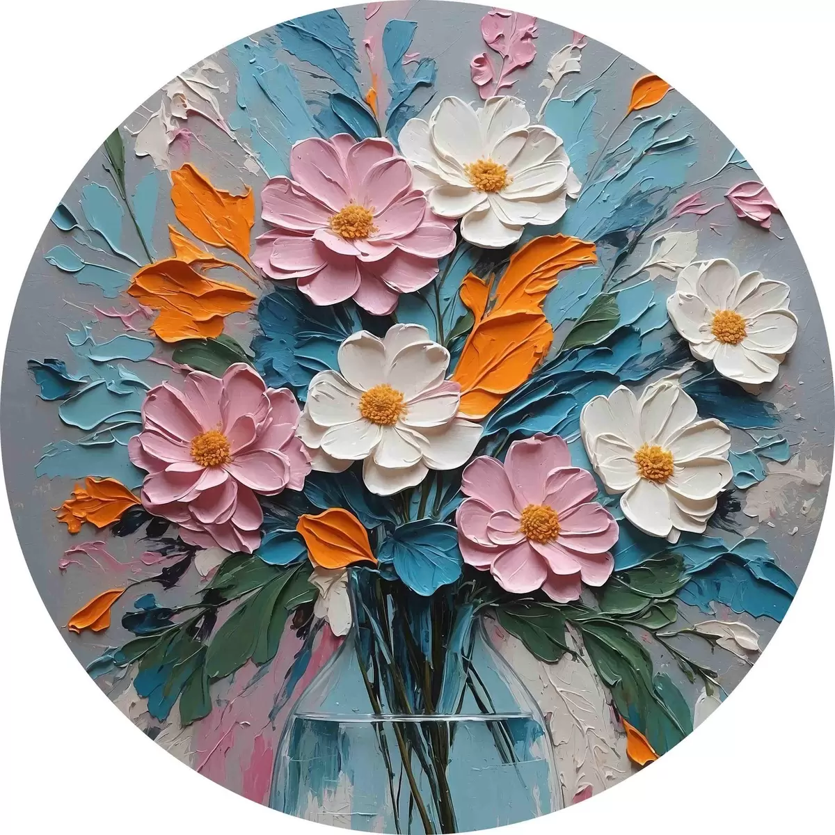 Runde Gemälde Malen von Blumen in einer Vase r38177