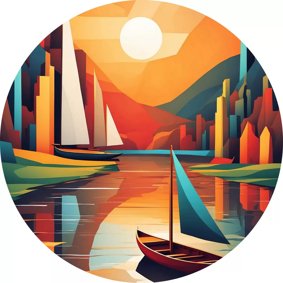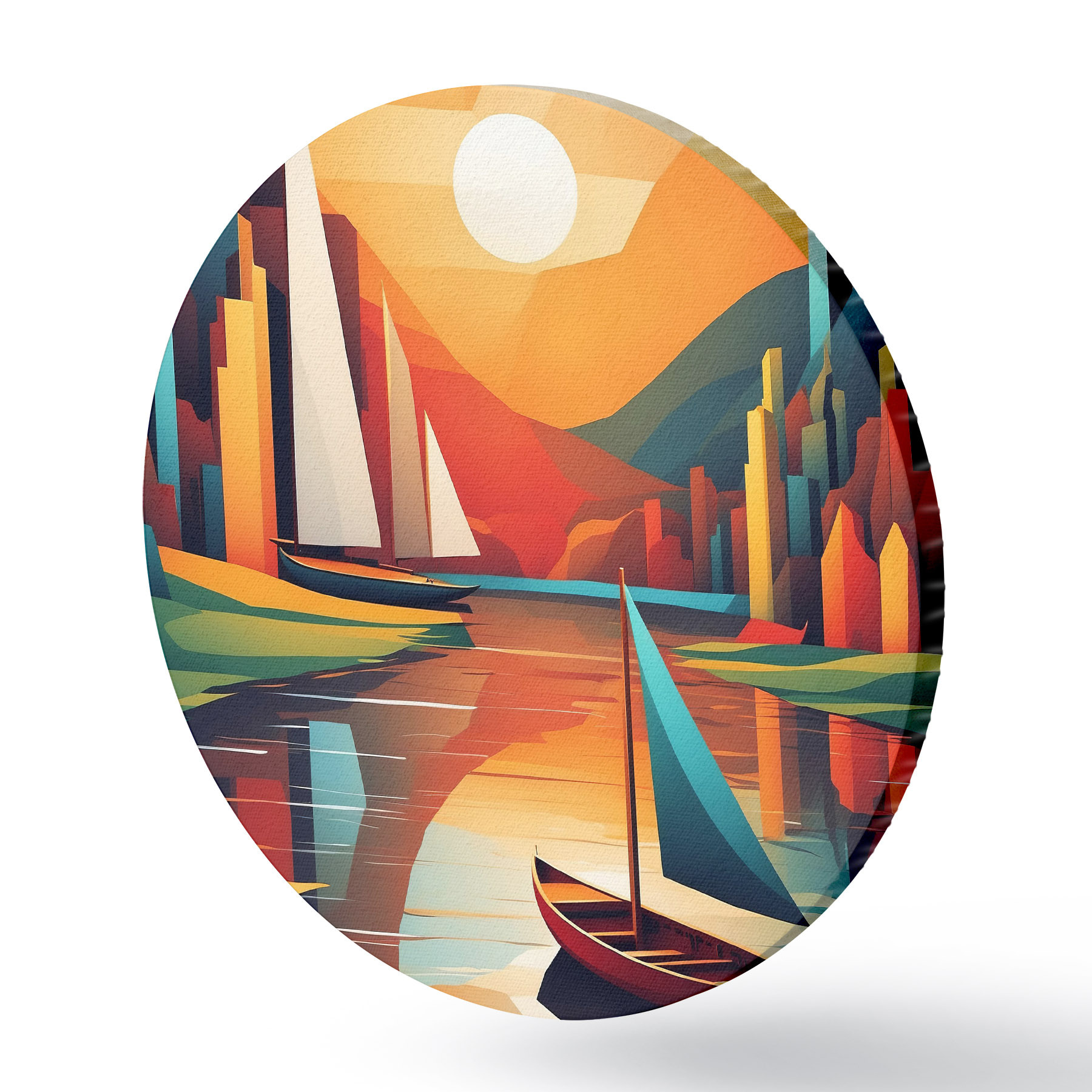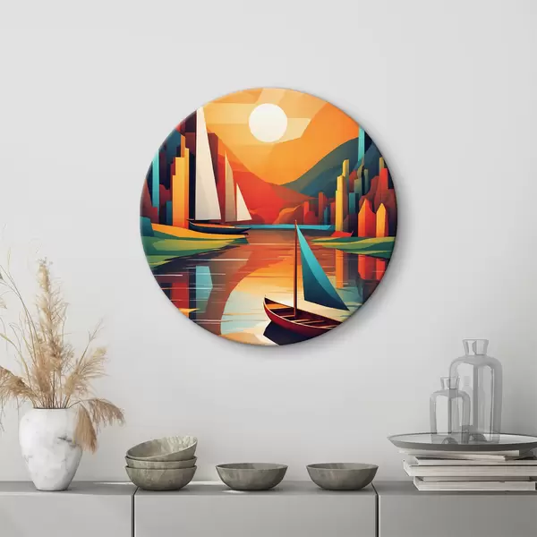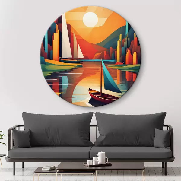 Runde Gemälde Boot auf dem Fluss. Vektorgrafik r38179