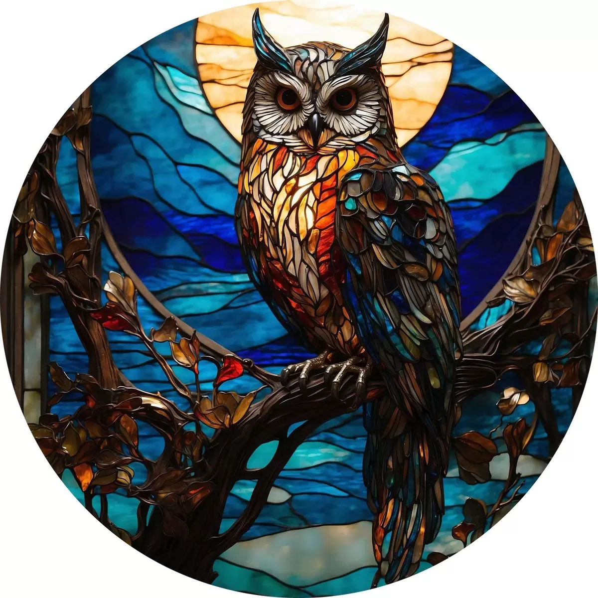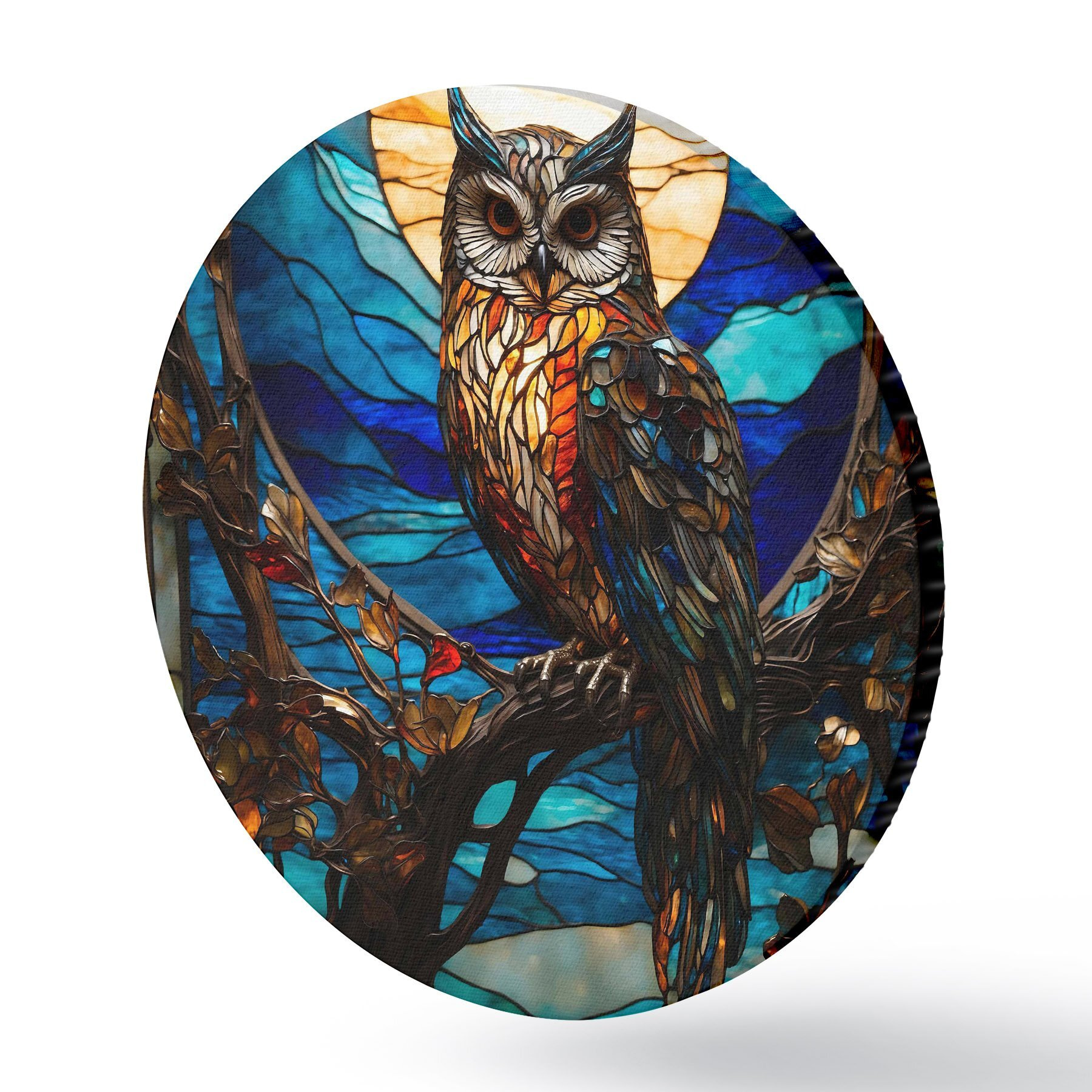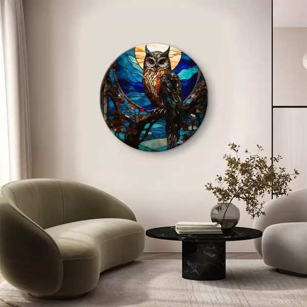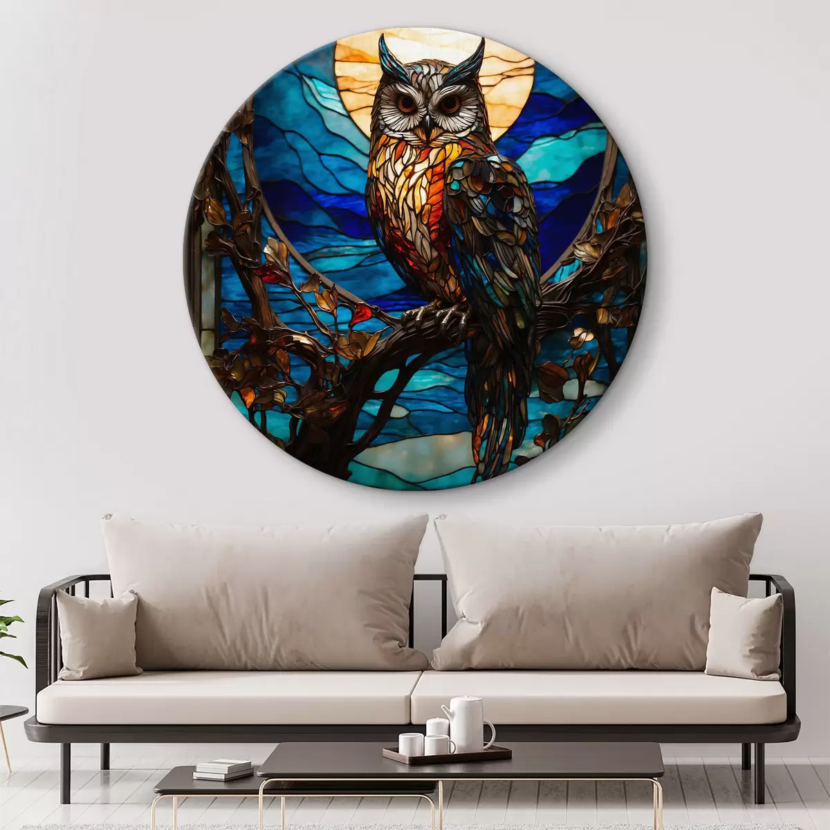 Runde Gemälde Glasmalerei Eule auf einem Baumzweig r38185