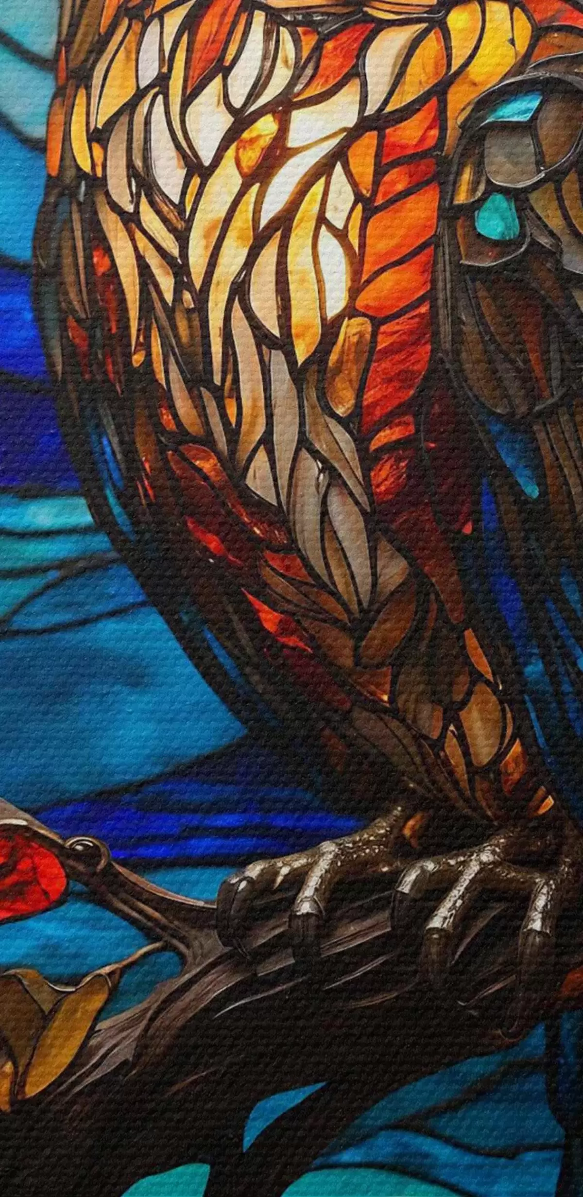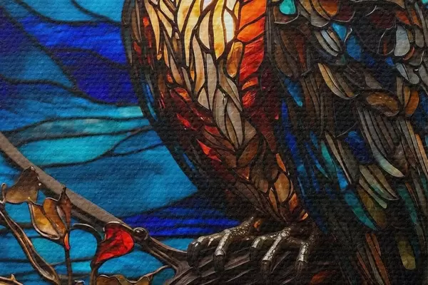 Bild Glasmalerei Eule auf einem Baumzweig Nr r38185