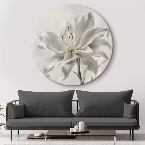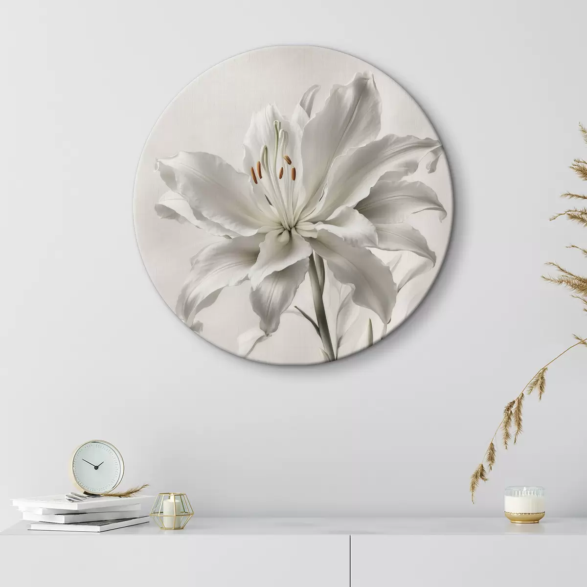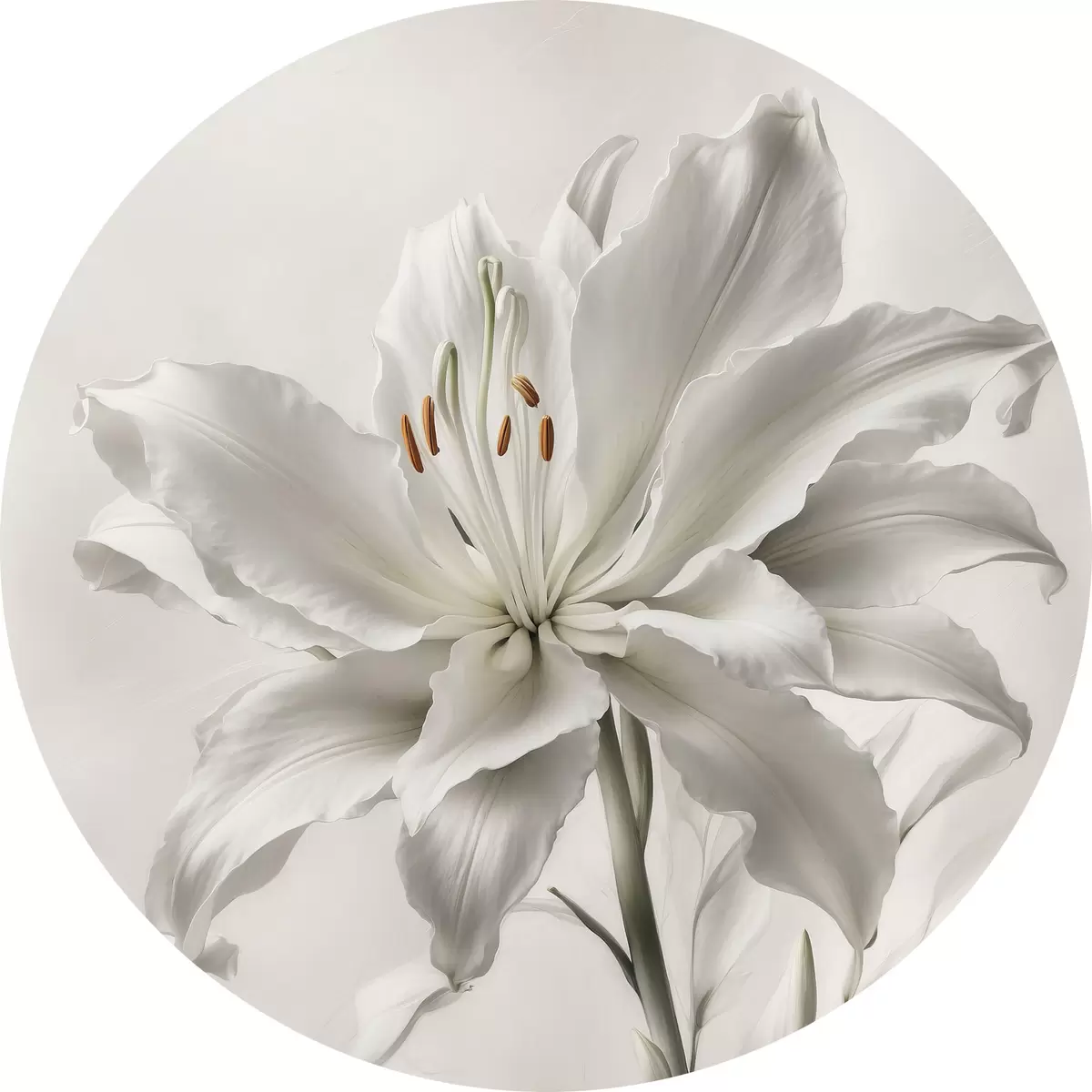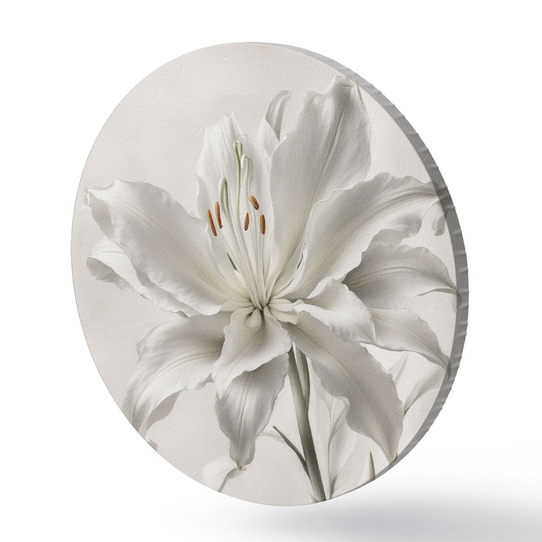 Runde Gemälde Weiße Blüte mit grünen Blättern r38190