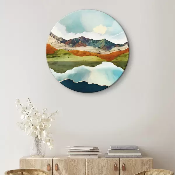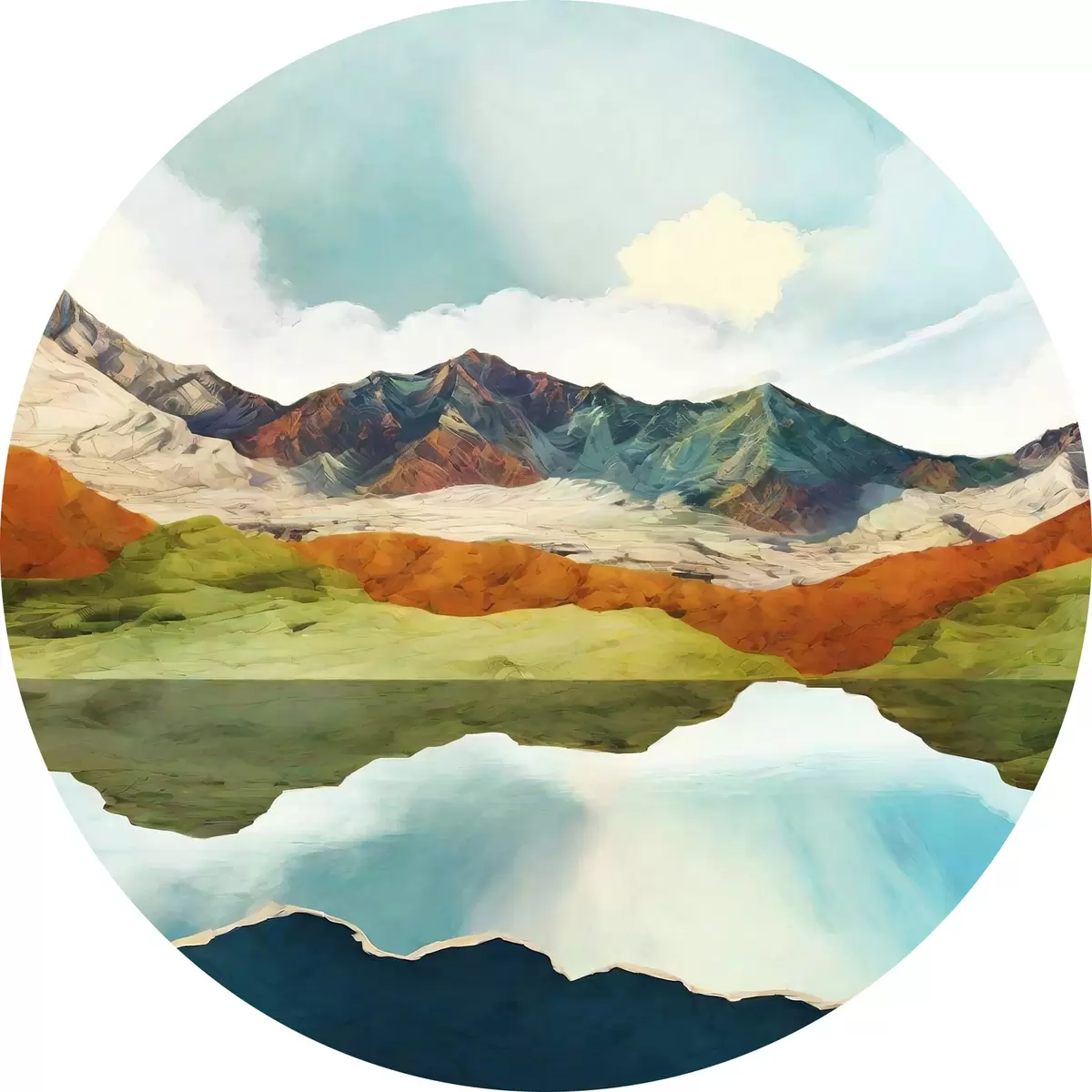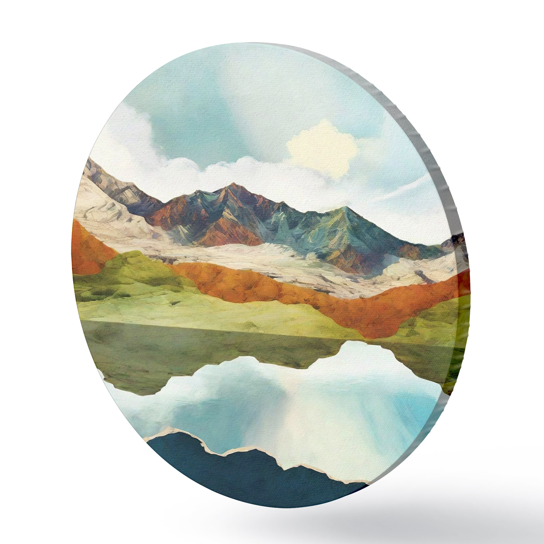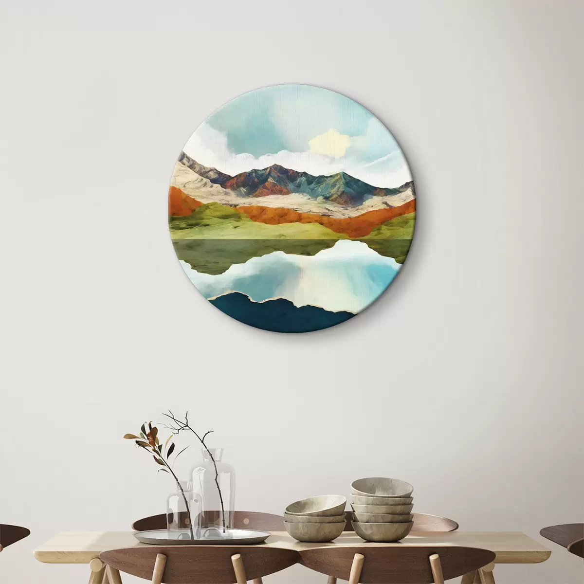 Runde Gemälde Wasserspiegelung auf den Bergen und dem Himmel r38193