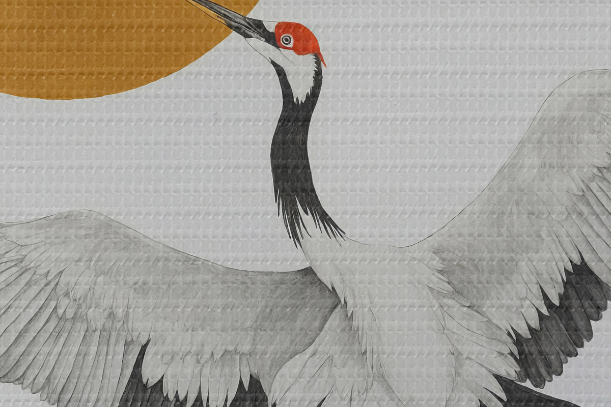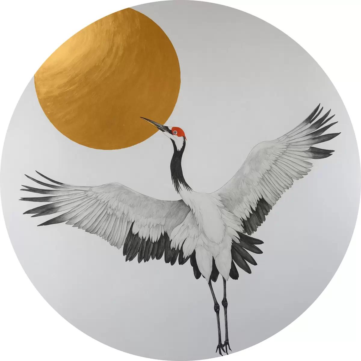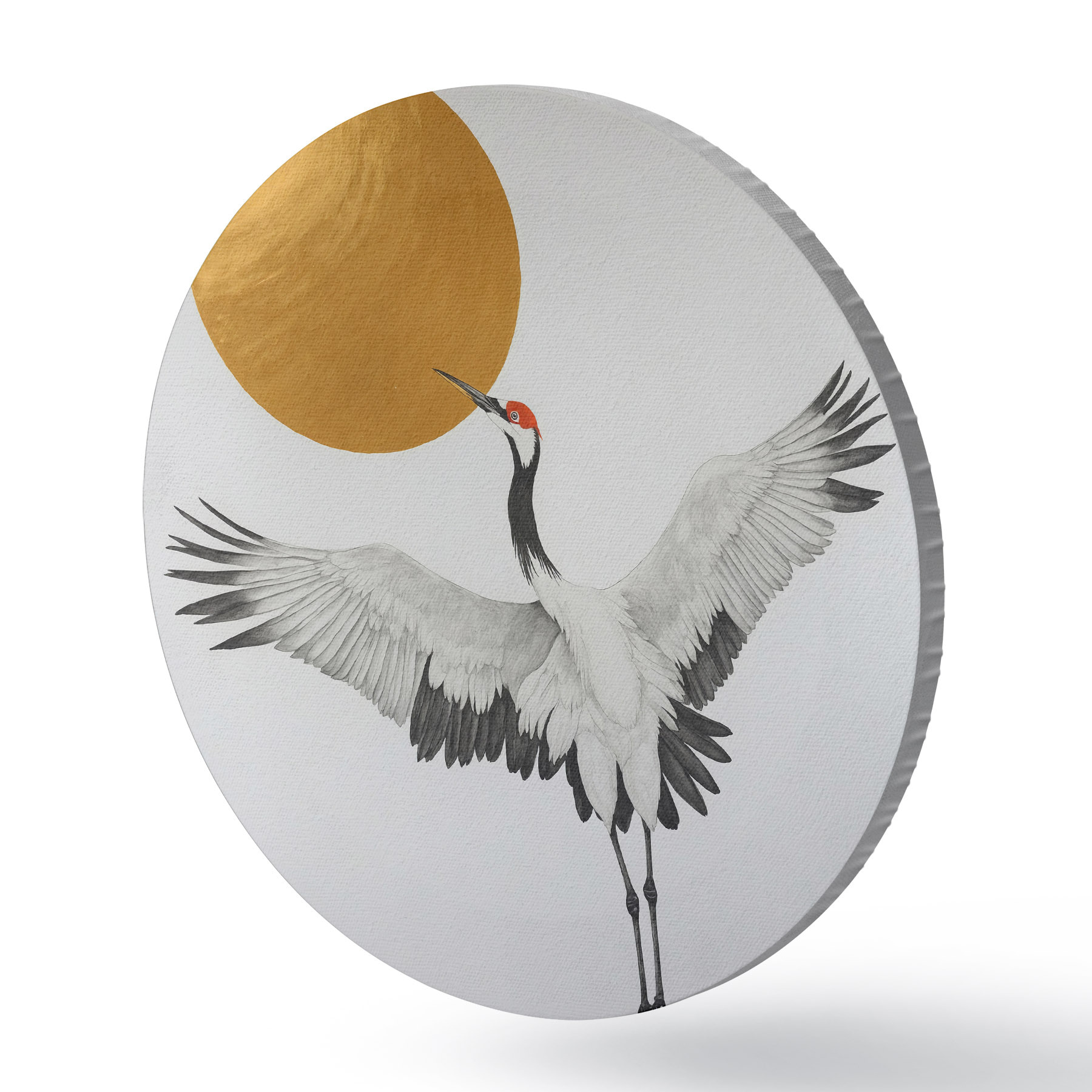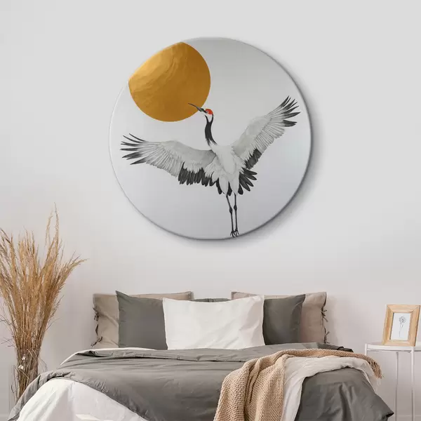 Runde Gemälde Kranich fliegt in Richtung Sonne r38195