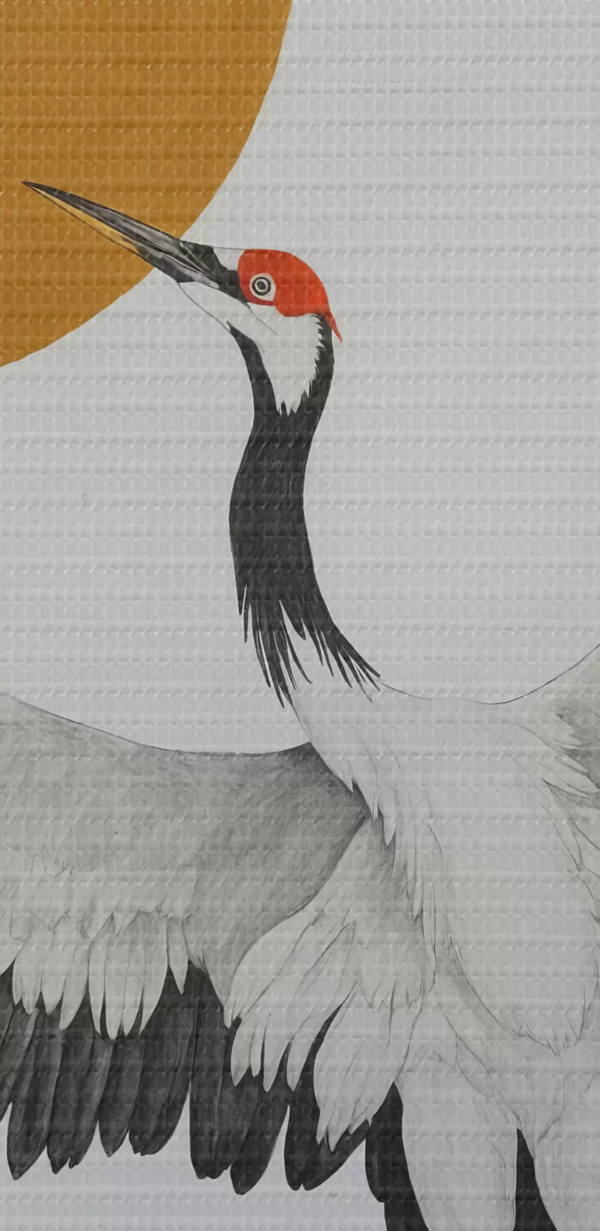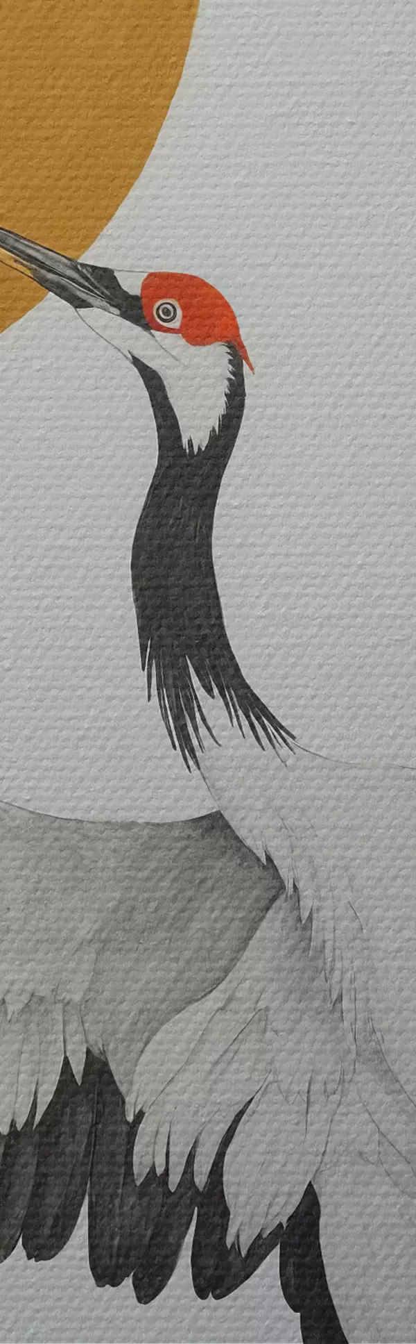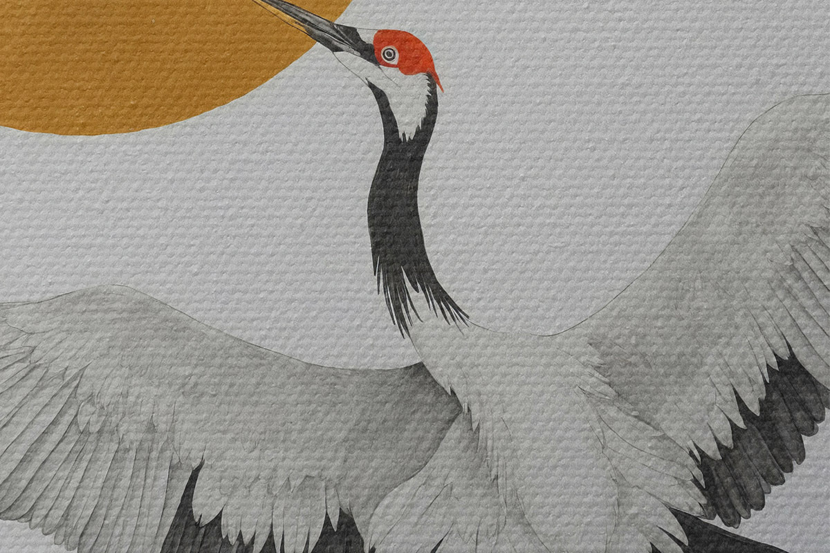 Runde Gemälde Kranich fliegt in Richtung Sonne r38195