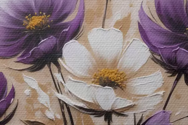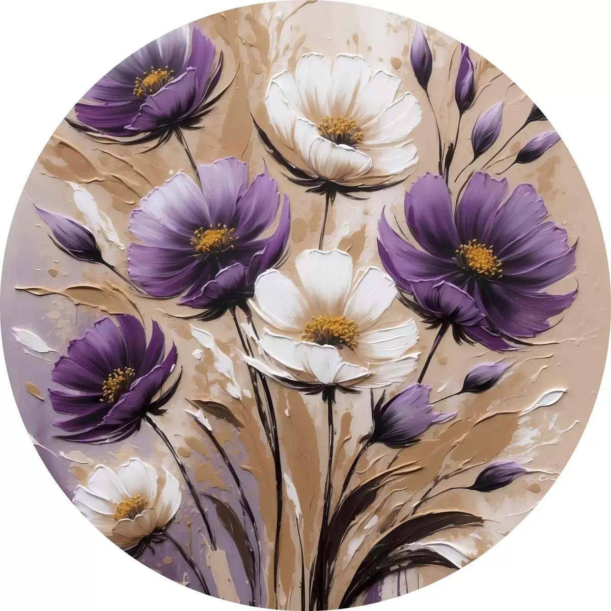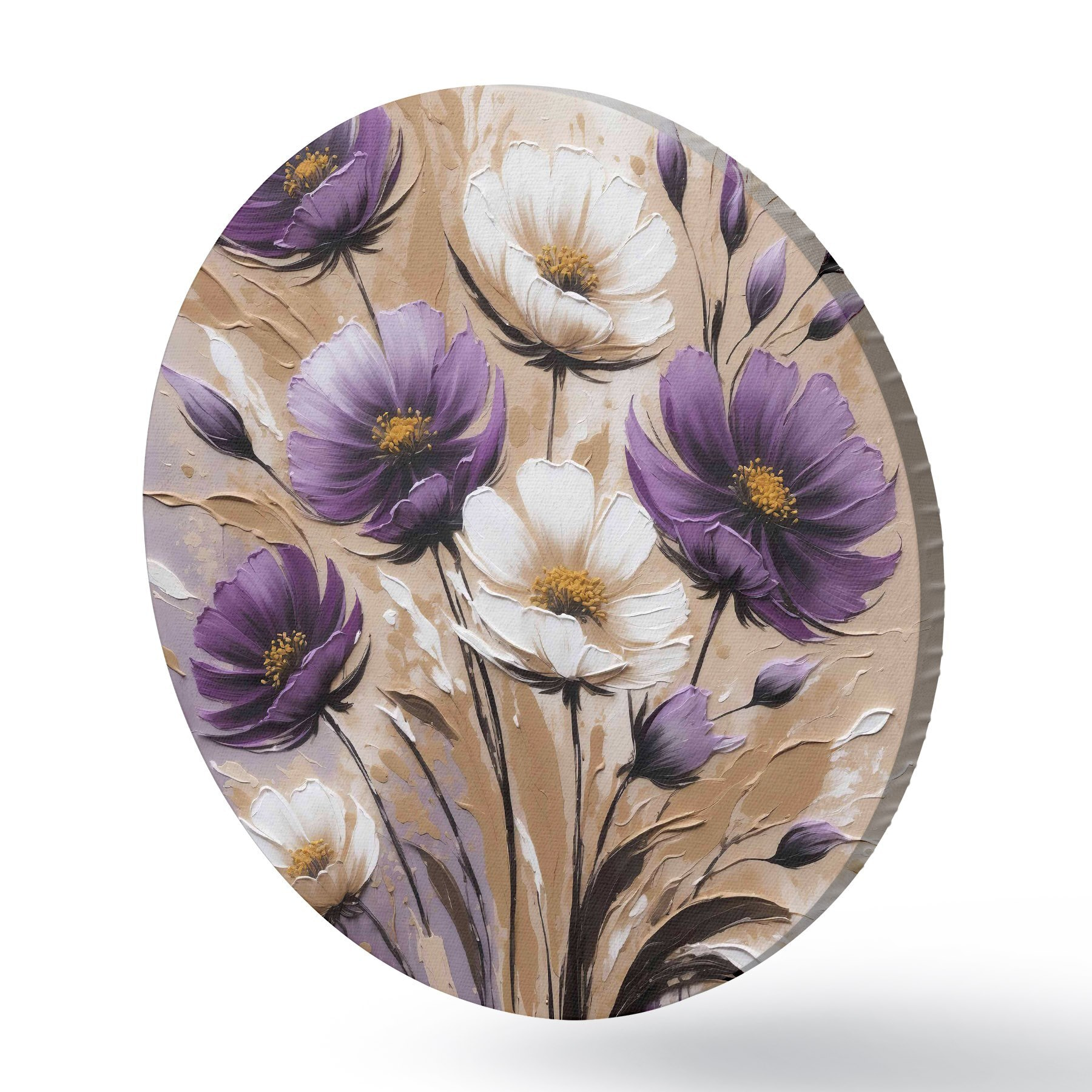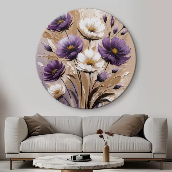 Runde Gemälde Blumenstrauß aus lila und weißen Blumen r38225