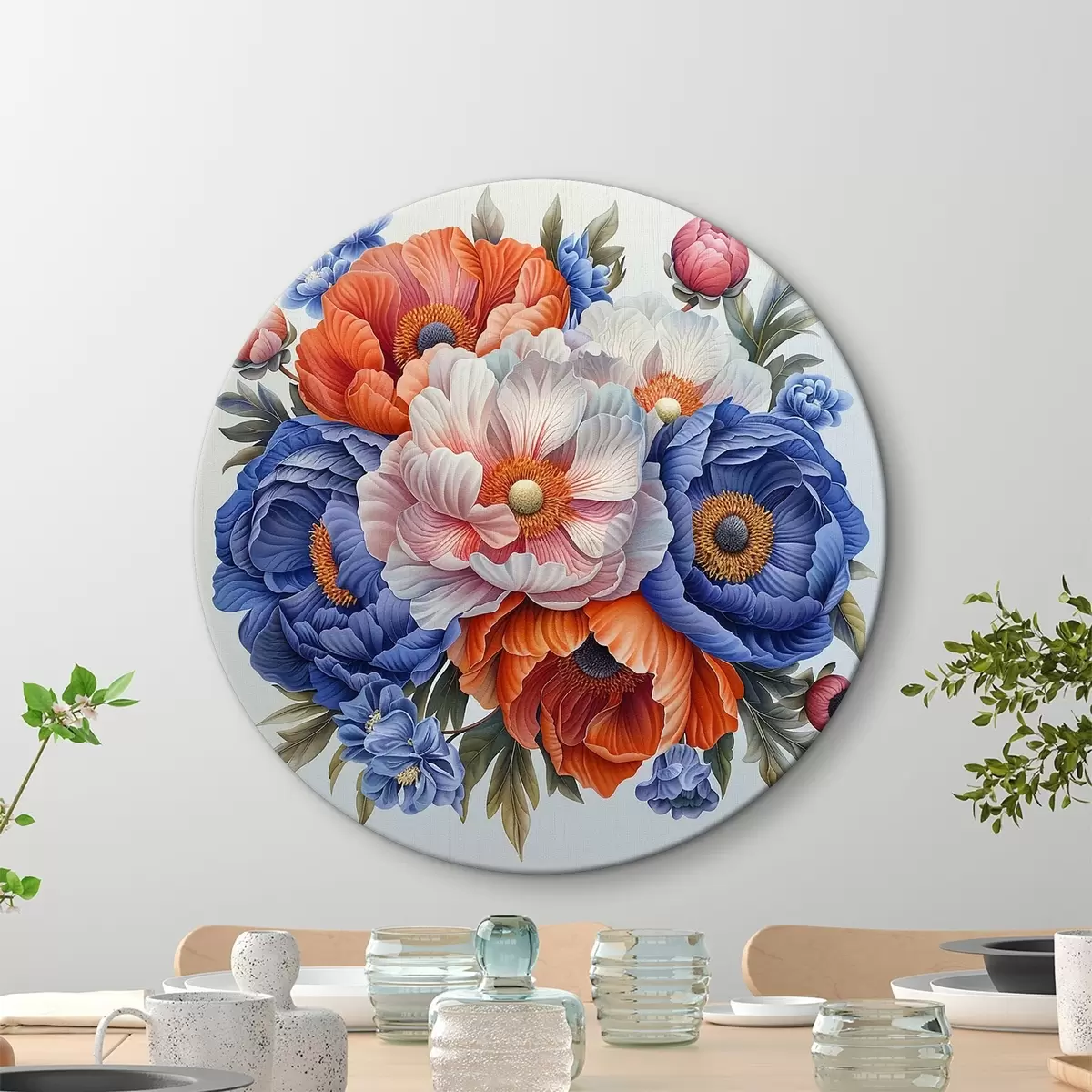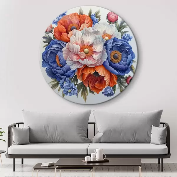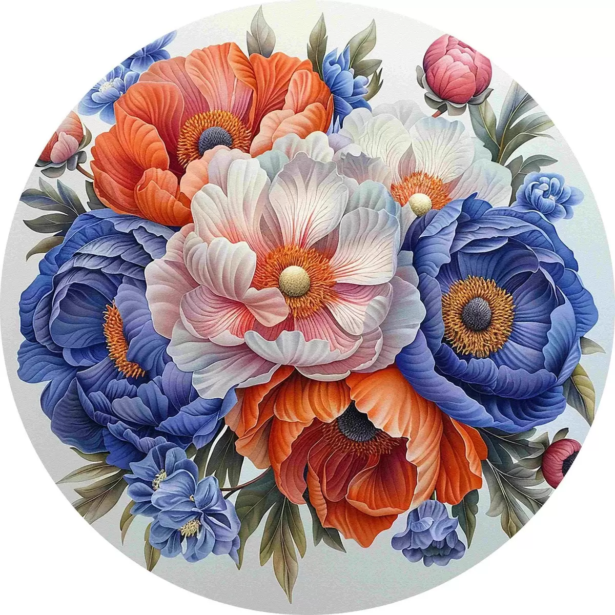 Runde Gemälde Bild von Blumen auf einem weißen Hintergrund r38244