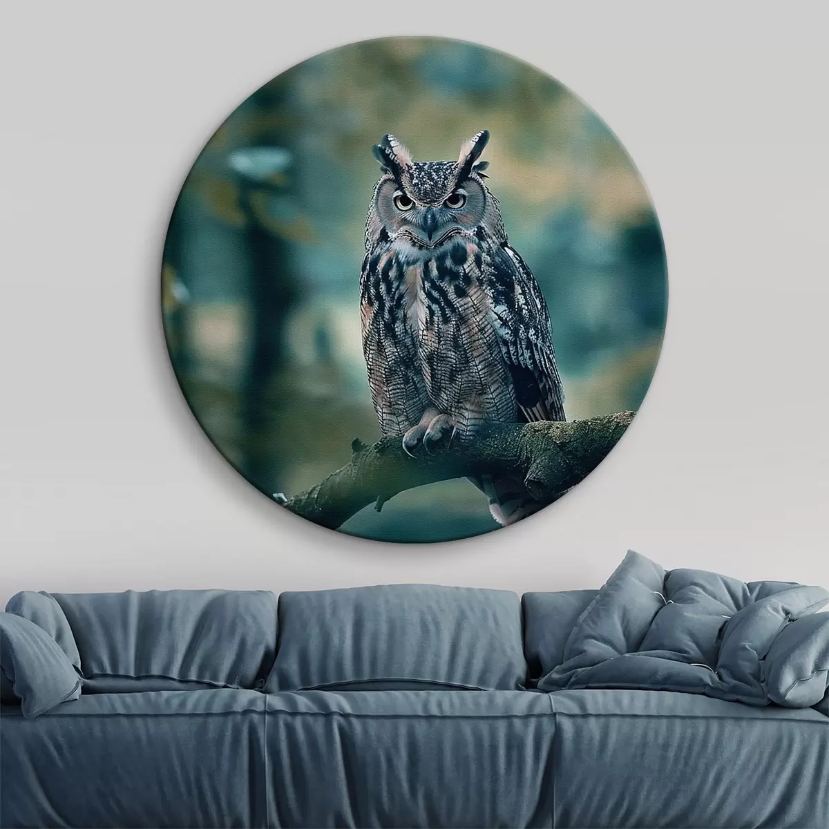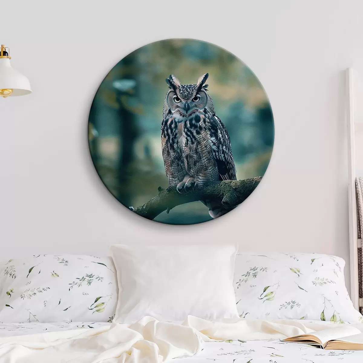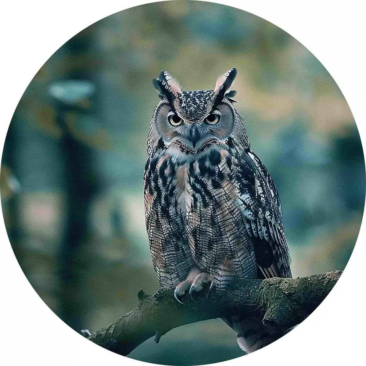 Runde Gemälde Eine Eule sitzt auf einem Ast r38249